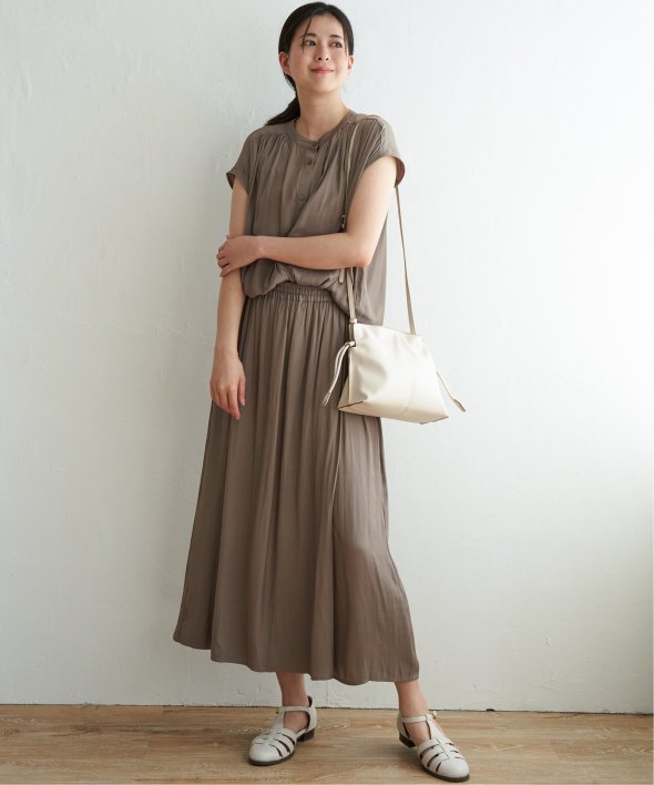 とろみのあるやわらかい落ち感と、ほどよいツヤ感が上品な割繊(かっせん)サテン素材。