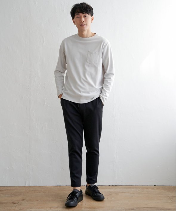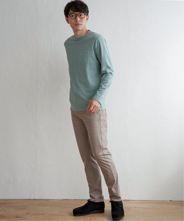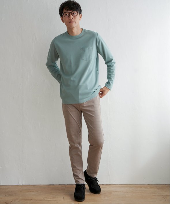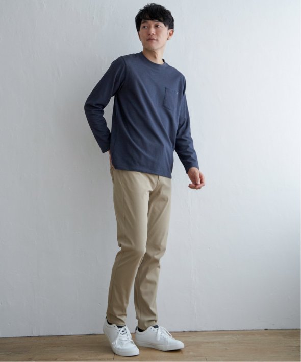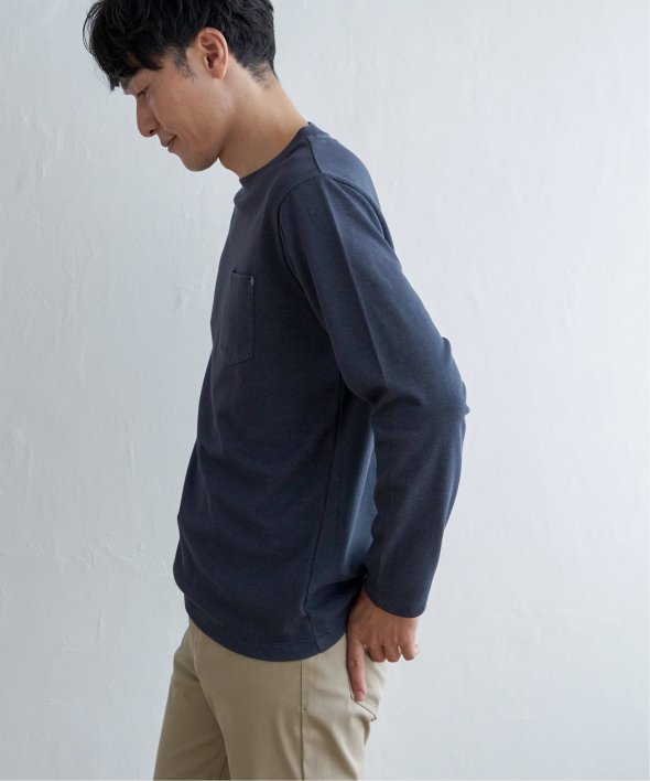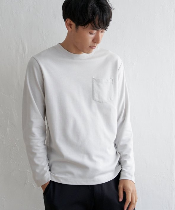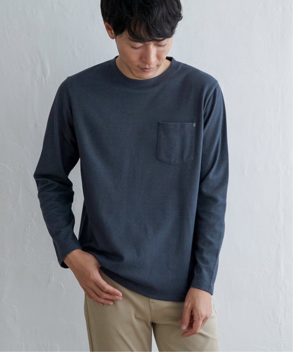 コーデの幅が広い、胸ポケット付きのベーシックな長袖Tシャツ。
