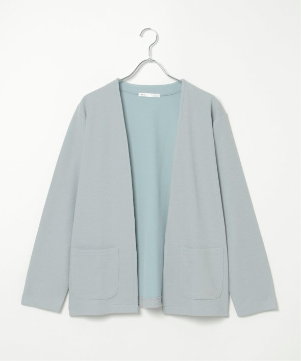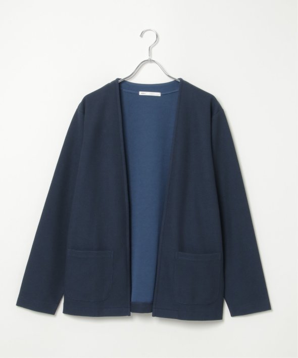 表裏が配色のダブルフェイス素材を用いたボタンレスカーデ。