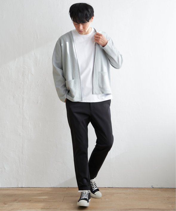ボタンレスのすっきりとしたデザインのカーディガン。