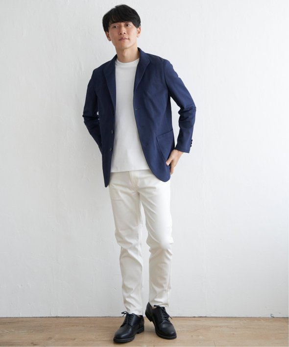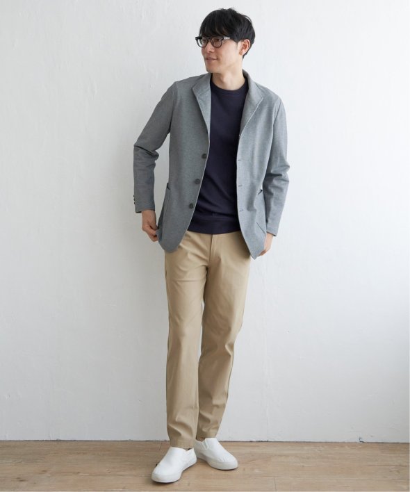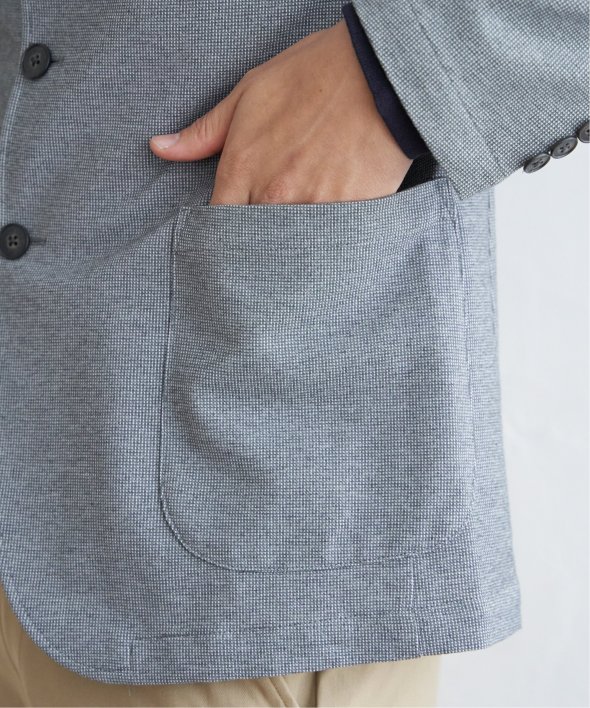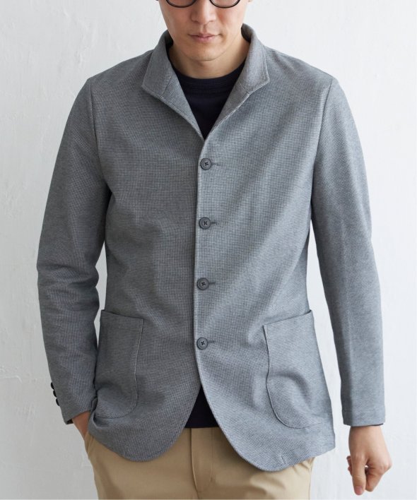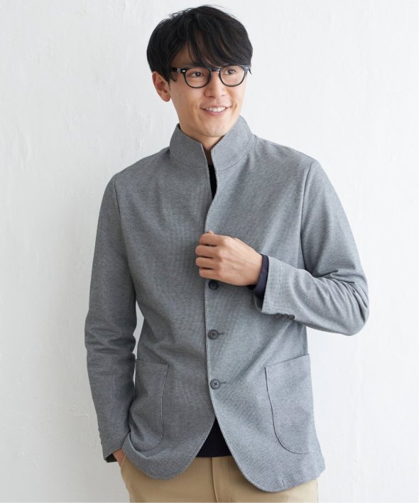 スタンド襟型が新鮮なジャケット。テーラード型のジャケットに飽きてしまった方にもおすすめです。【素材】適度なハリ感のあるサーフニット素材。【デザイン】すっきりした襟回りが特徴のスタンドジャケットです。腰のポケットはオンオフ兼用しやすいパッチポケット。【ikkaポイント】他ではあまり見られないスタンド襟型のジャケット。軽快なサーフニットは、伸縮性やイージーケアに優れており、お手入れしやすいのが特徴です。半裏仕様で長い期間着用可能。