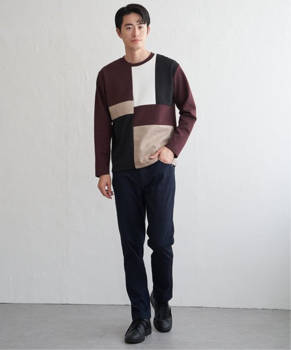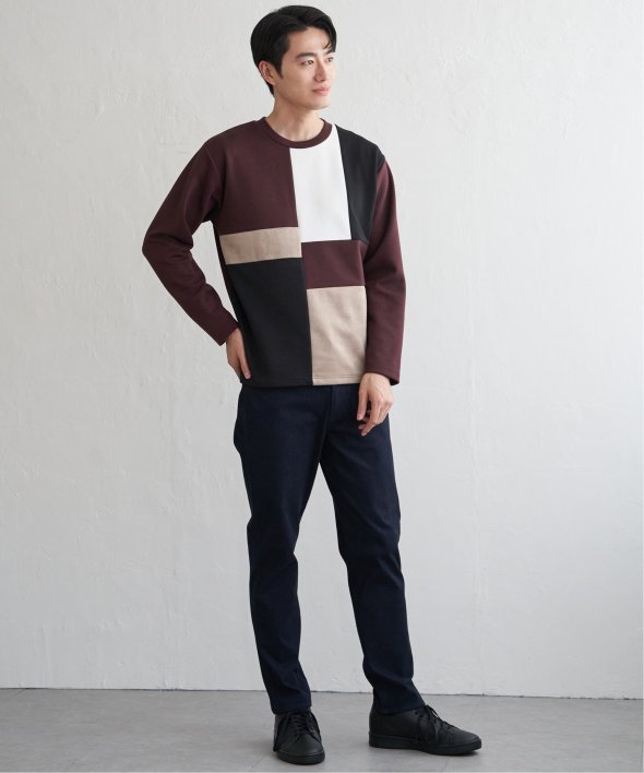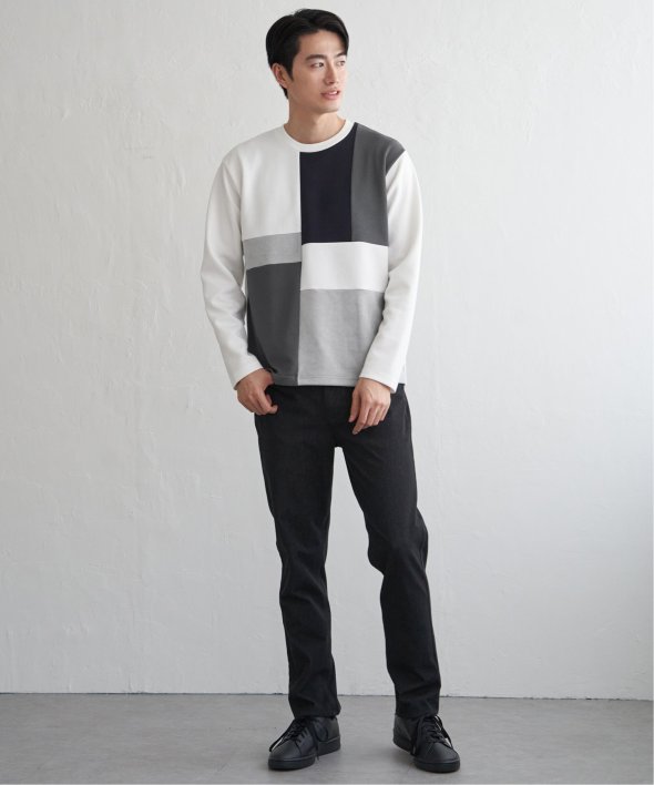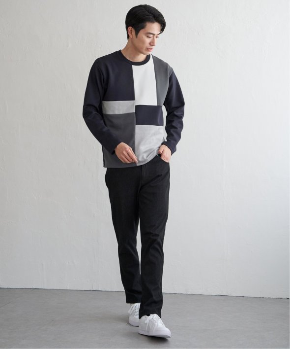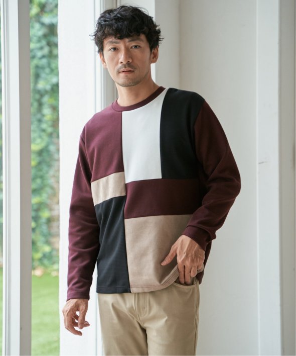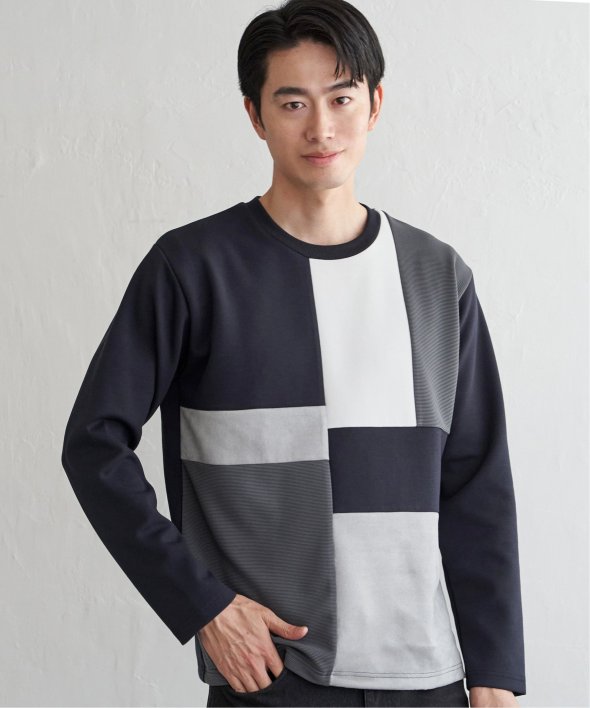 ikka で根強い人気となっている、異素材×ブロッキングで切り替えた「ブロックス」シリーズのプルオーバーです。