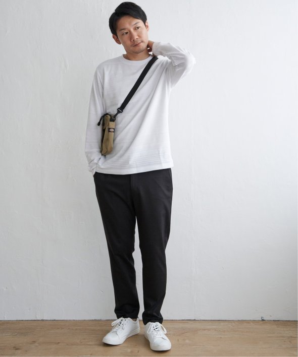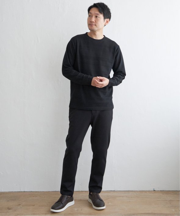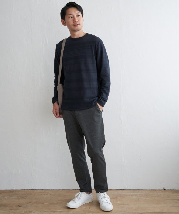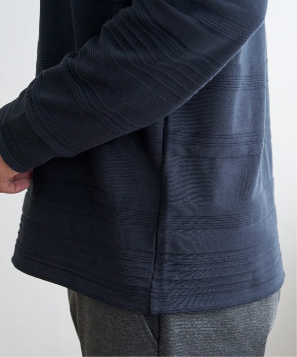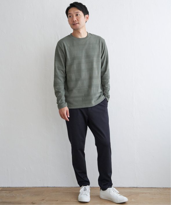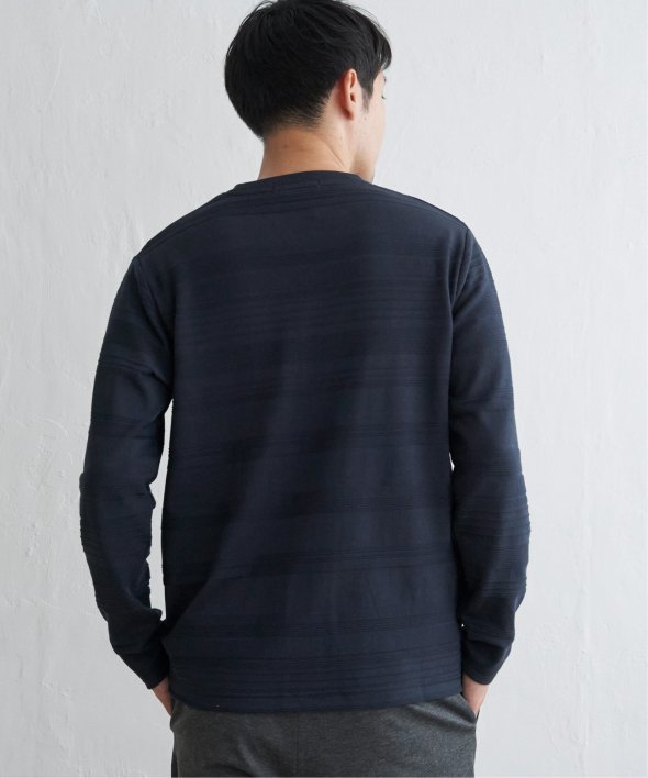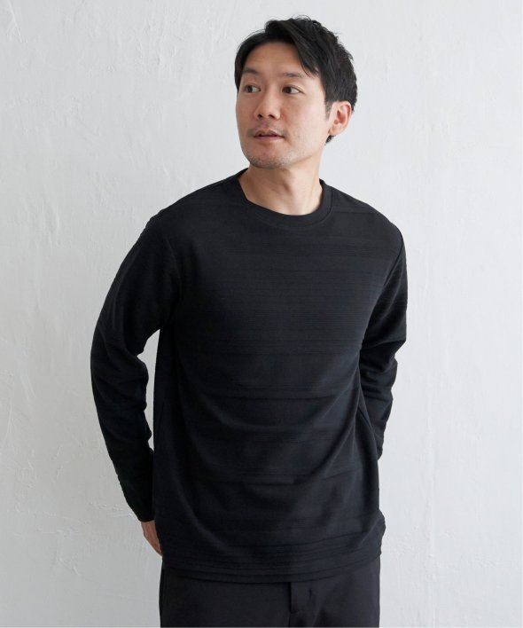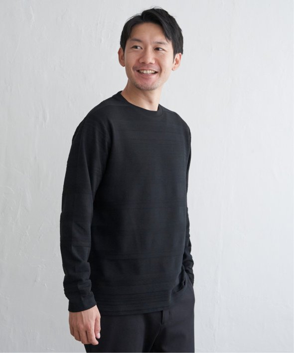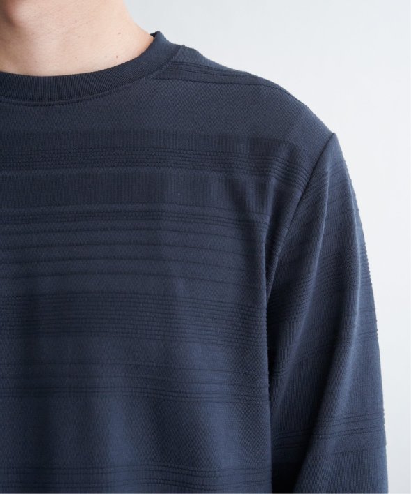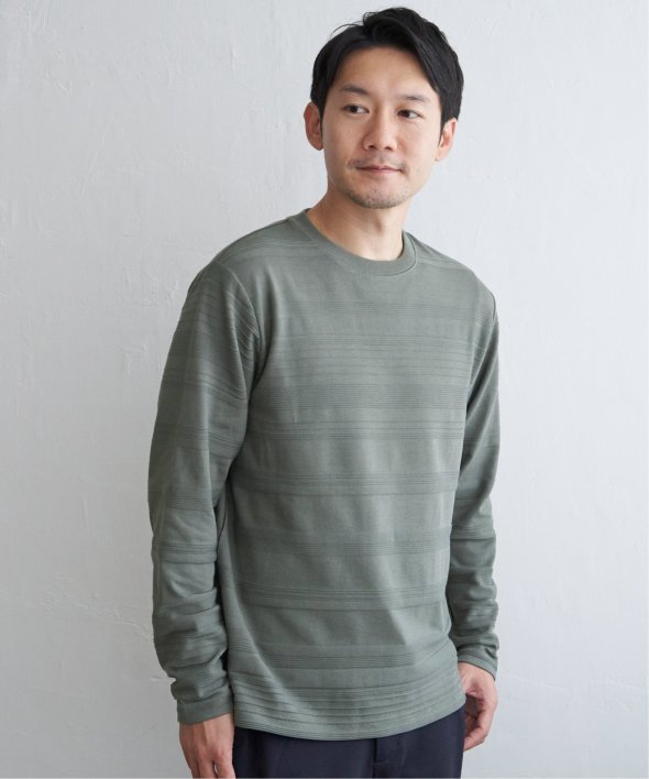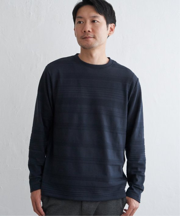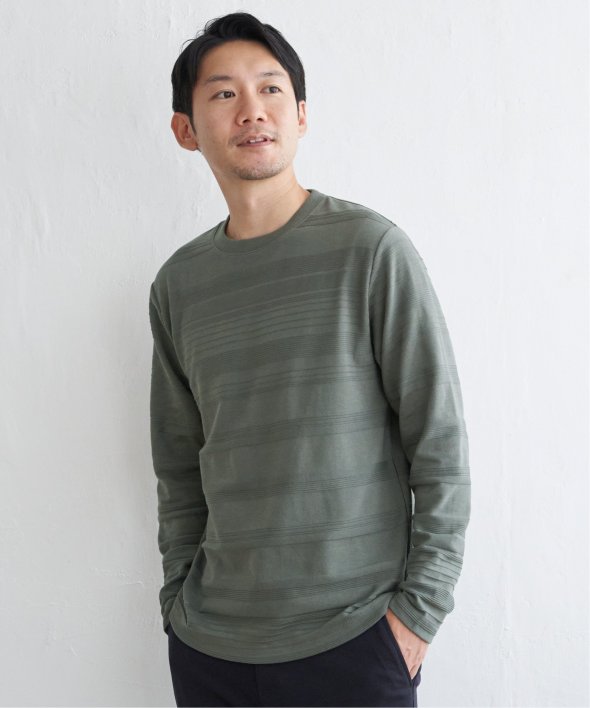 横うねの表情が特徴的なリップル地を使用した長袖Tシャツ。生地の凹凸感によるボーダー柄は、シンプルでありながらさり気なく表情のある、まさに大人にぴったりなデザインです。【素材】ランダムに配置された凹凸感のあるボーダー。【デザイン】凹凸のある地柄のランダムボーダーTシャツ。サイズ感は着回しのきくレギュラーサイズです。【ikkaポイント】シンプルな長袖のクルーネックTシャツですが、生地の表面に凹凸のある地柄のランダムボーダーが特徴です。