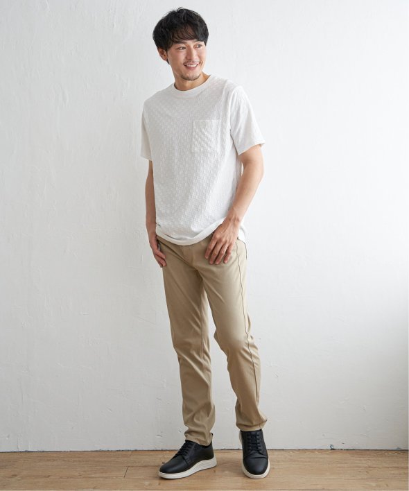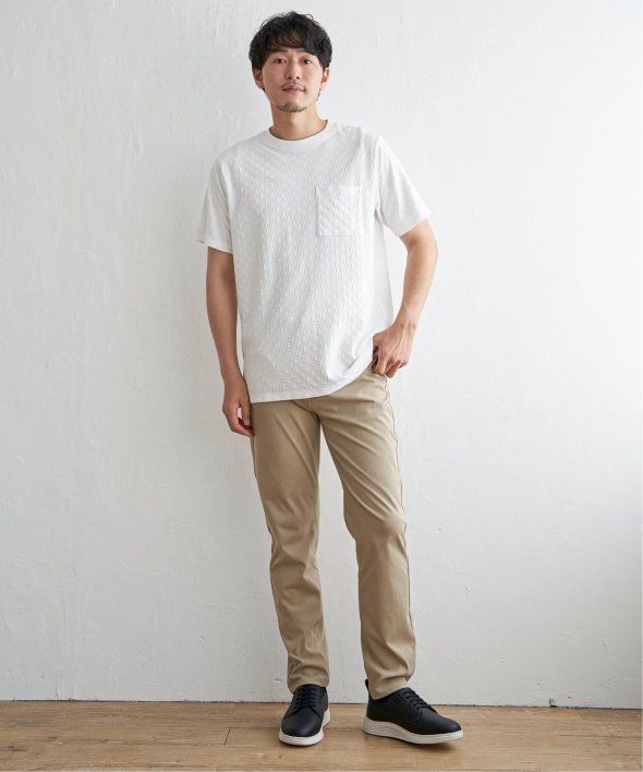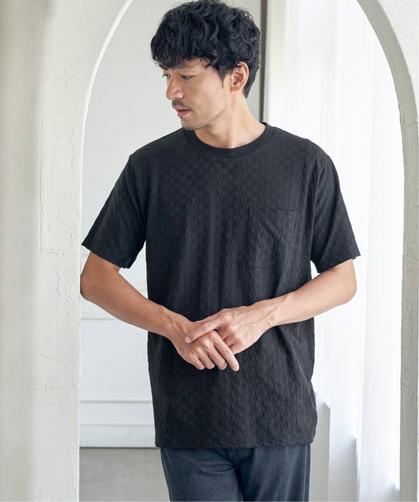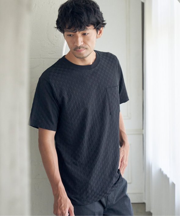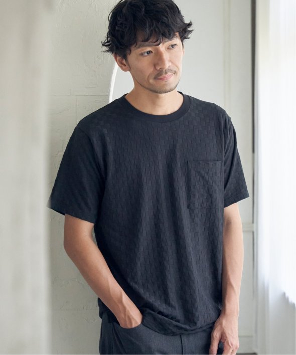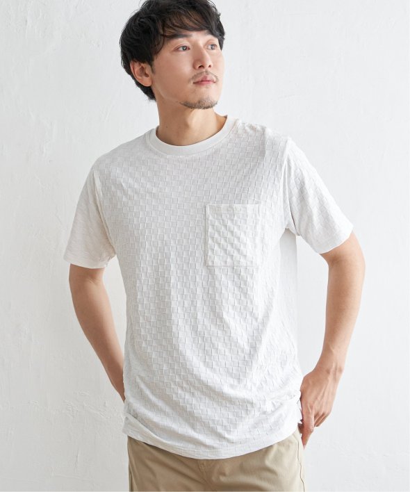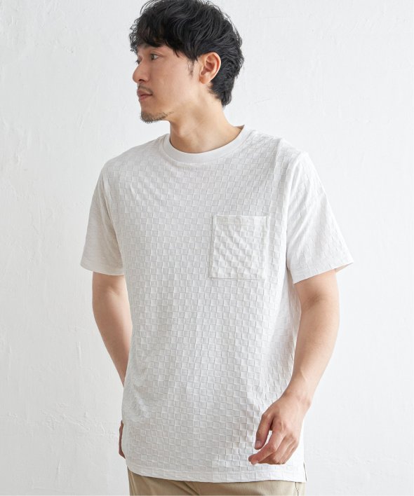 生地の凹凸で市松柄を表現した、立体感が特徴のTシャツ。