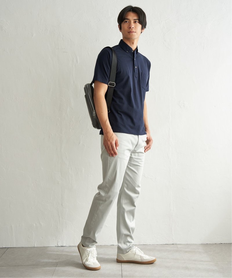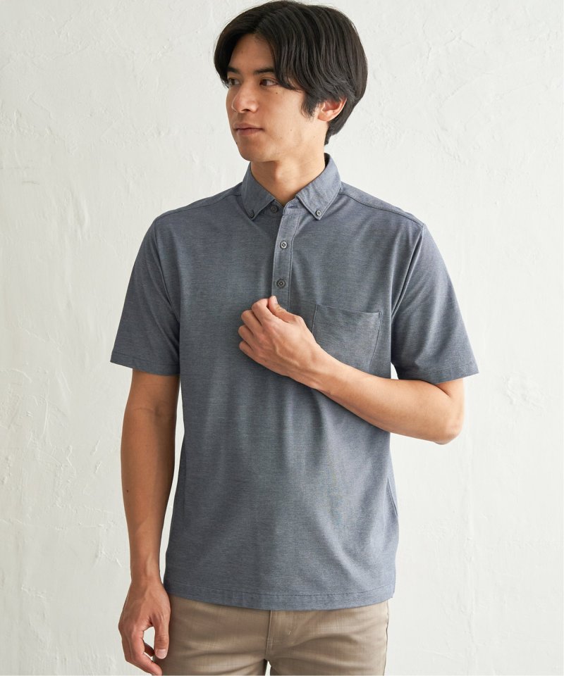 きちんと感と快適さを兼ね備えた、冷感スイスカラーのボタンダウンポロシャツ。