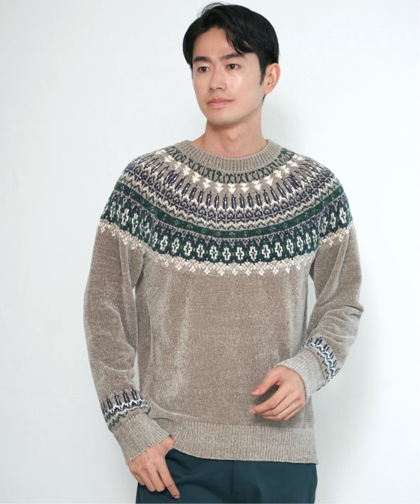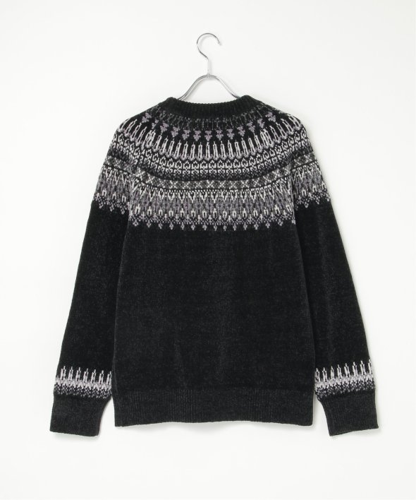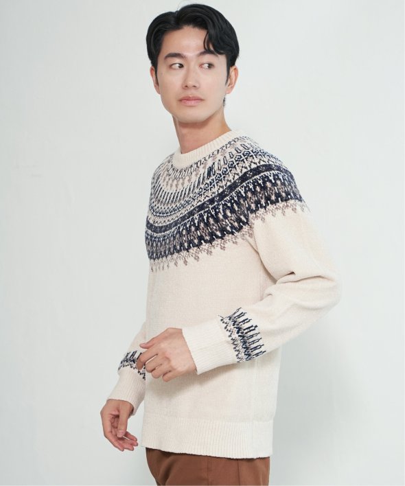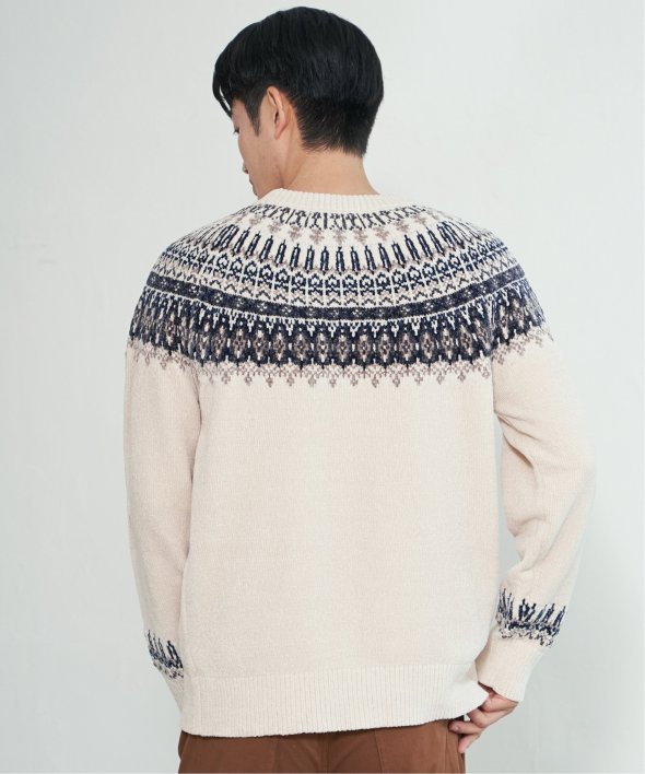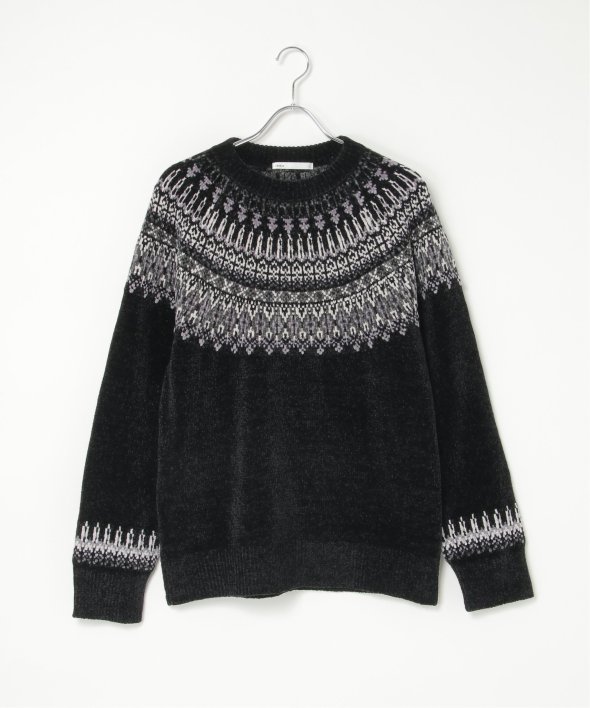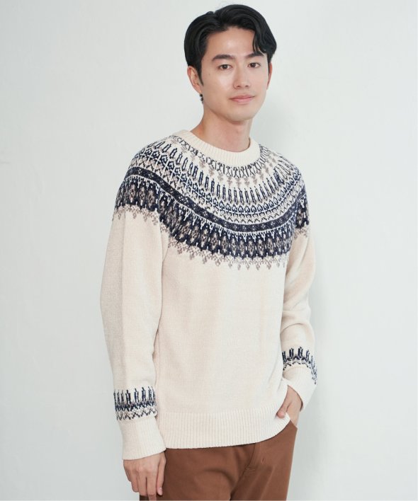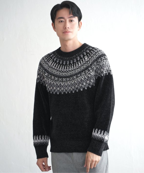 どこかノルディックな雰囲気ただよう求心柄のニットプルオーバー。