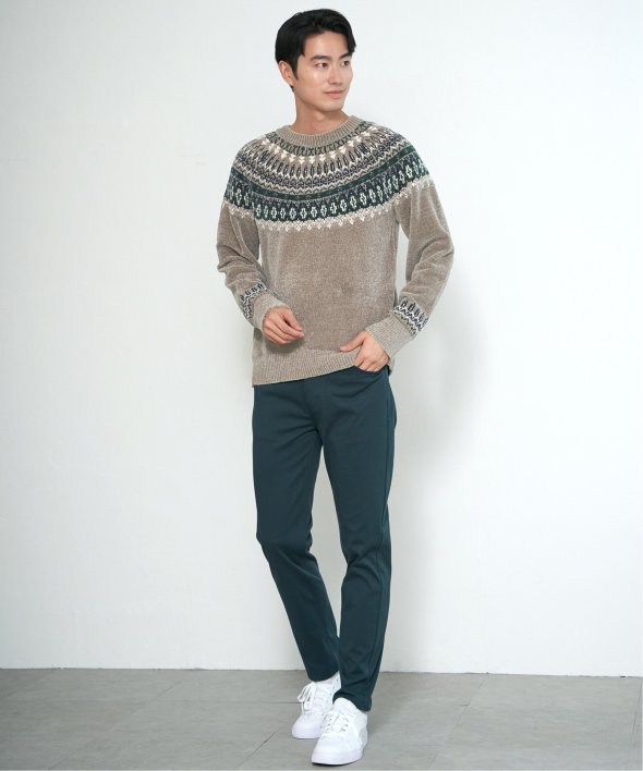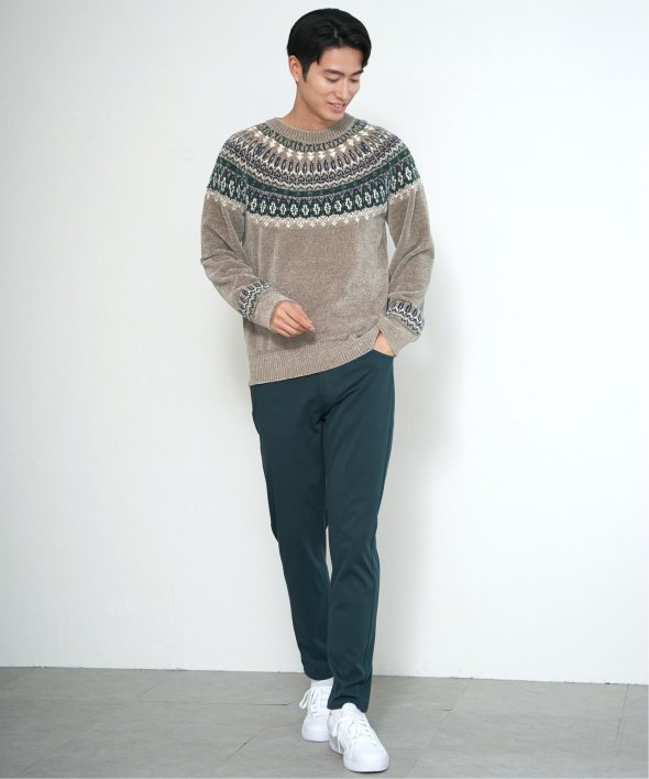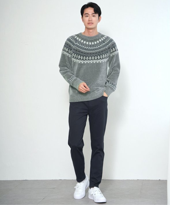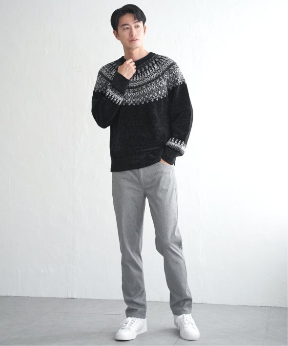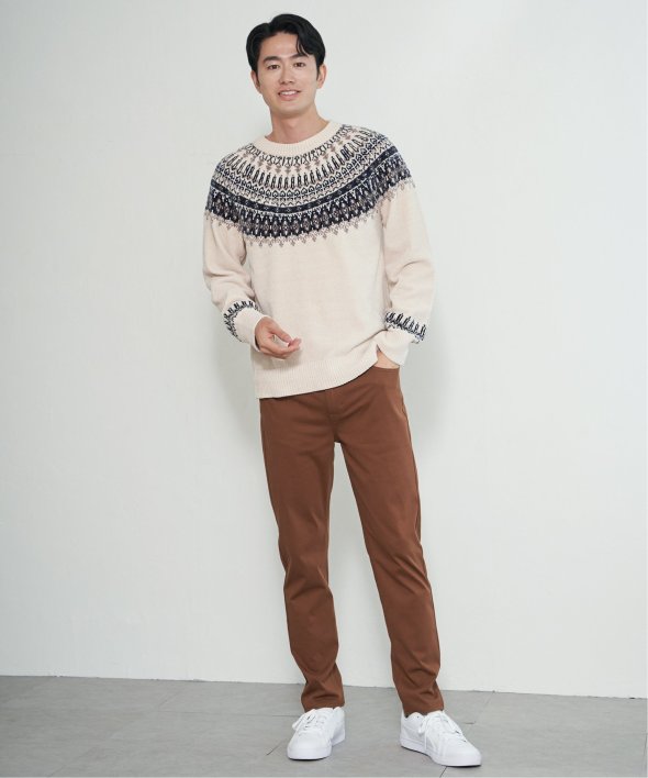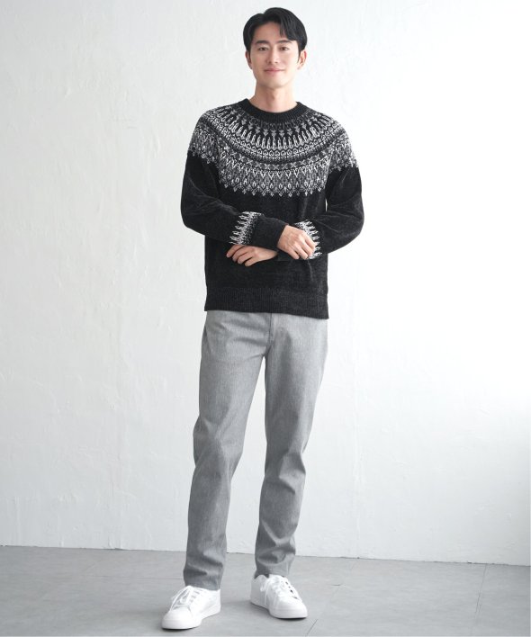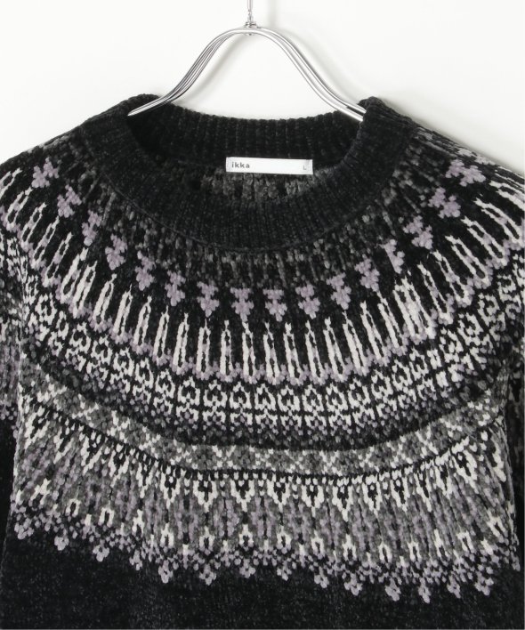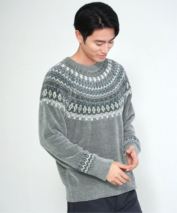 どこかノルディックな雰囲気ただよう求心柄のニットプルオーバー。