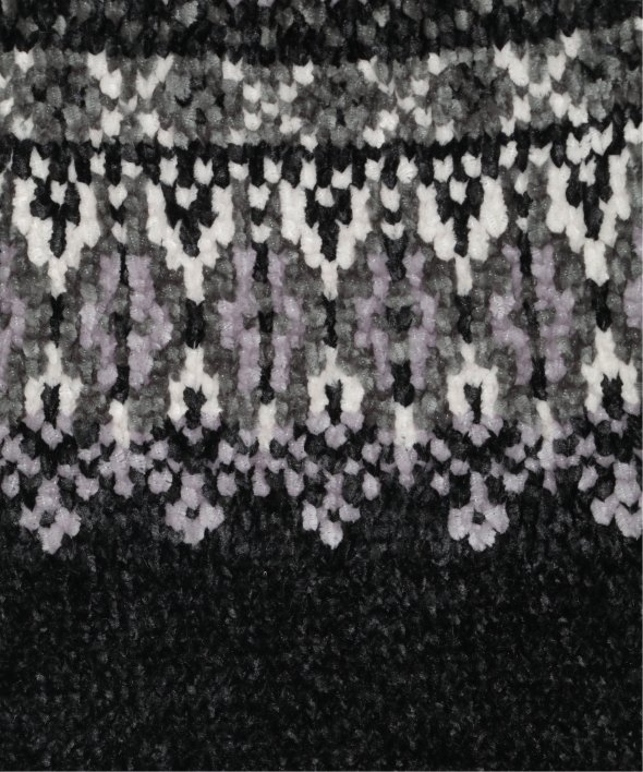 表面がなめらかなモール糸を使用した求心柄ニット。