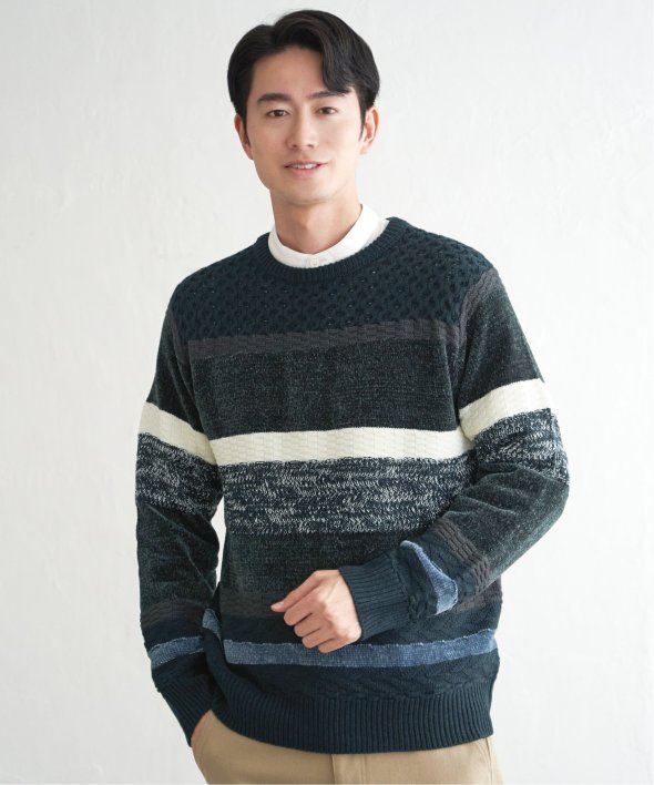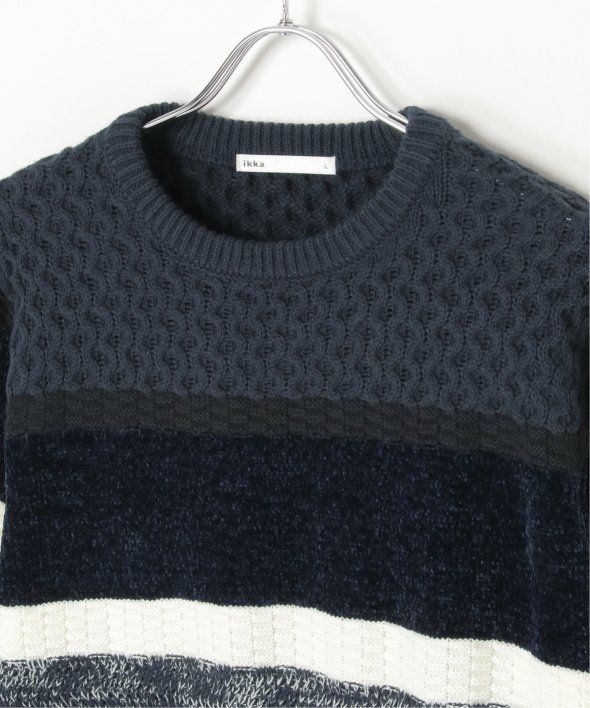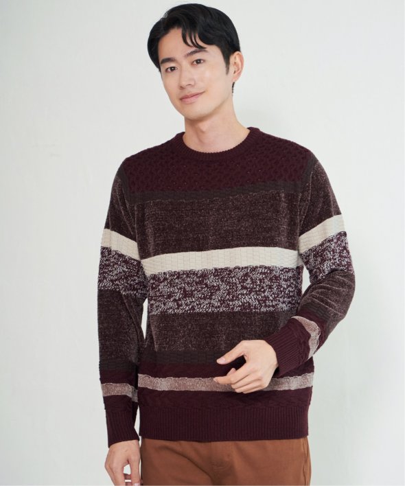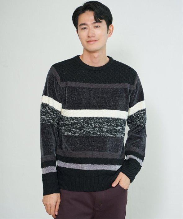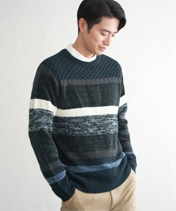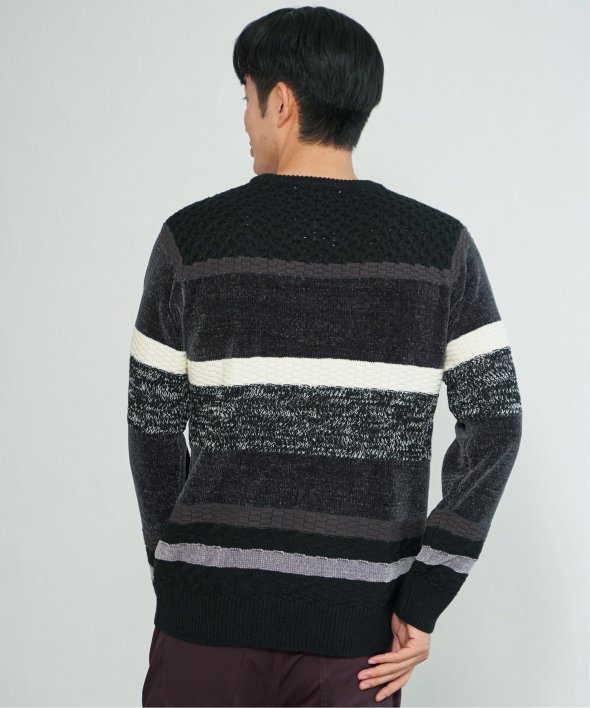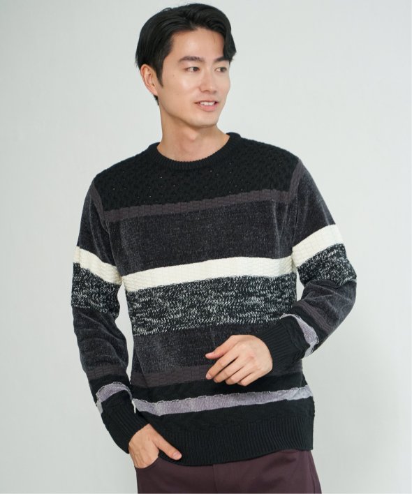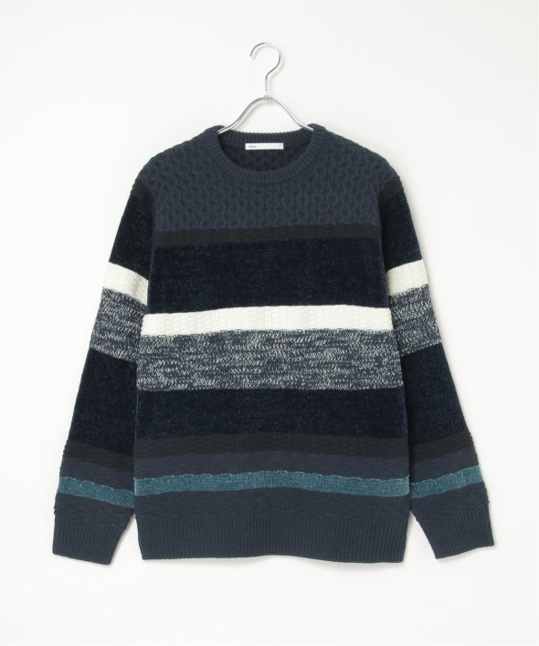 編地変化を持たせたランダムボーダーニット。