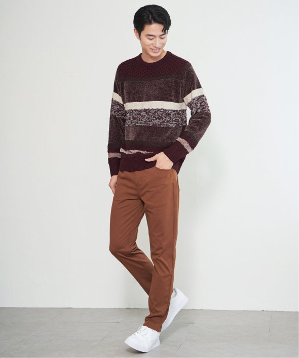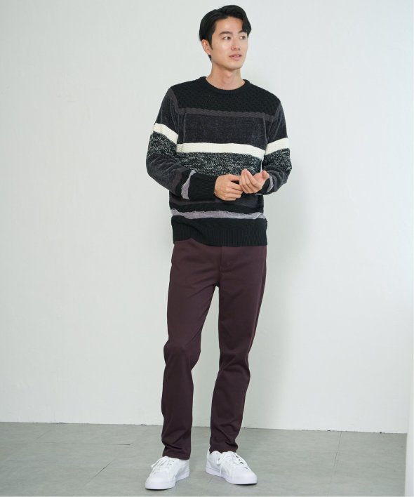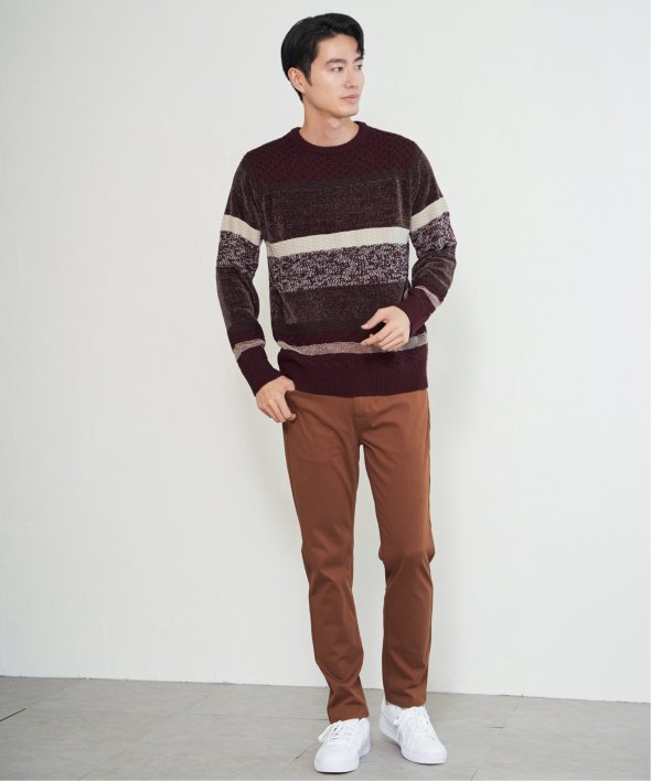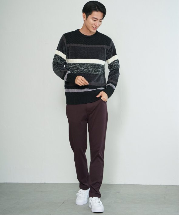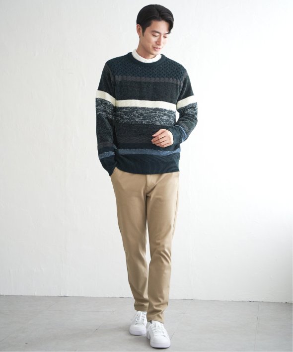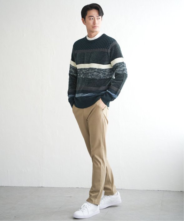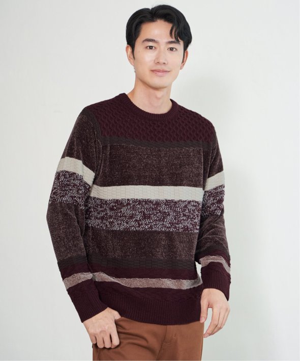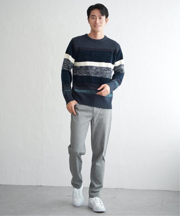 編地変化を持たせたランダムボーダーニット。