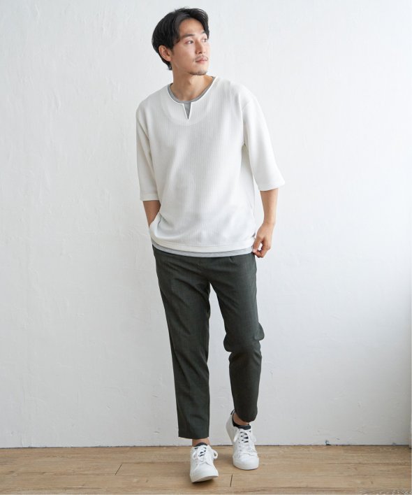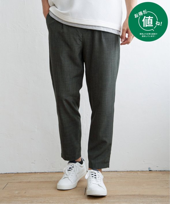 リネンライクでありながら、シワになりにくい生地を使用したアンクルパンツ。