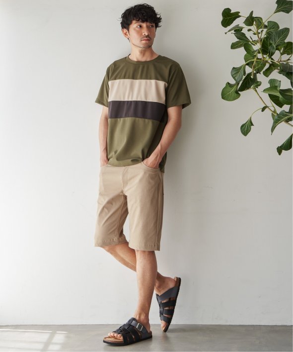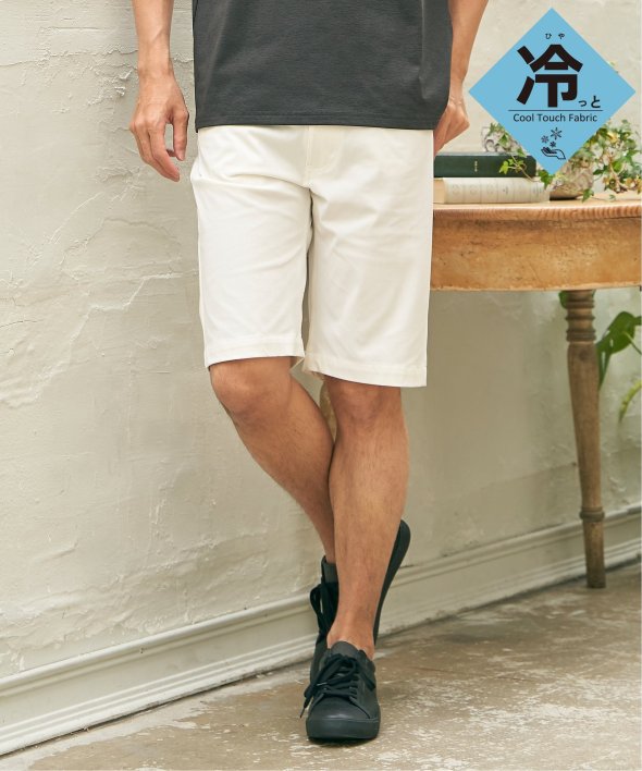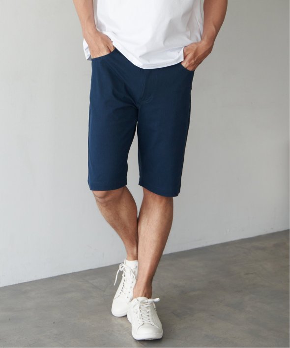気温の高い時期でも快適性を保ってくれる接触冷感5ポケットショートパンツ。