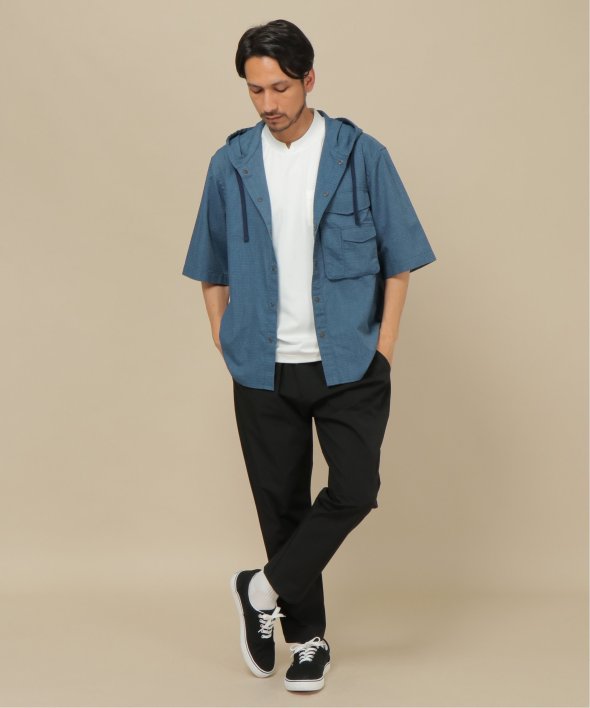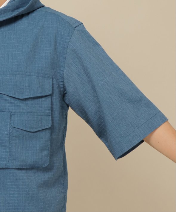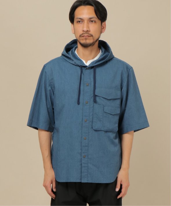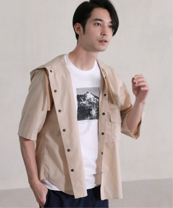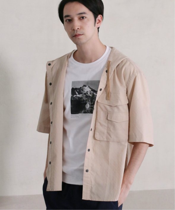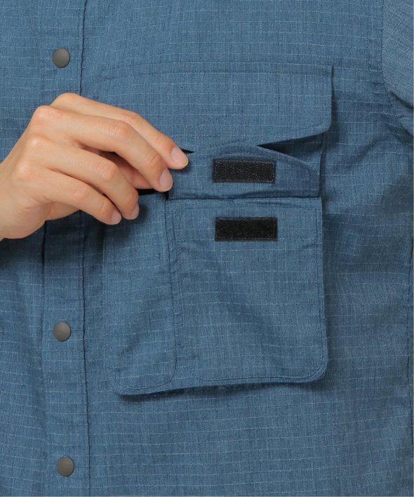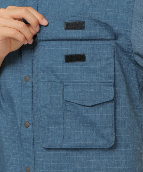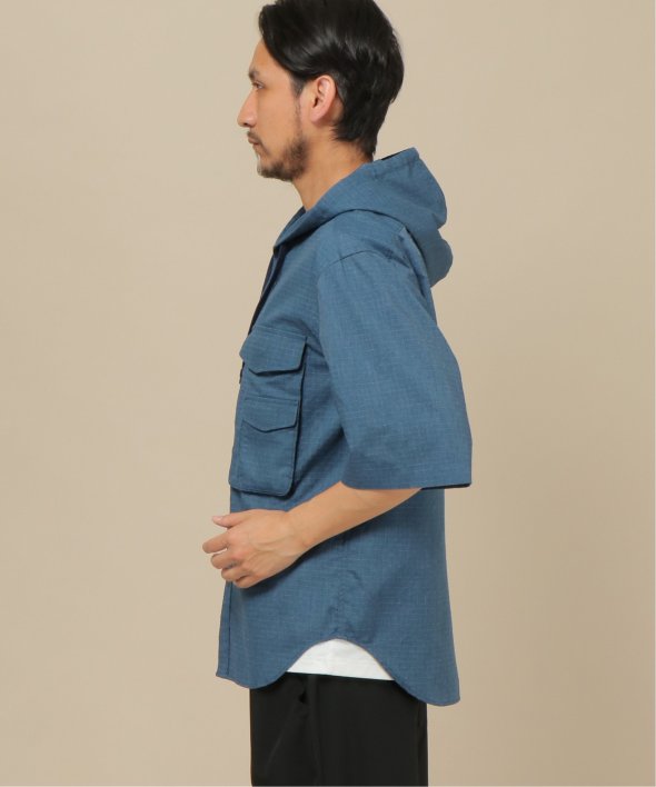 引き裂きに強いリップストップ生地を使用したフードシャツ。