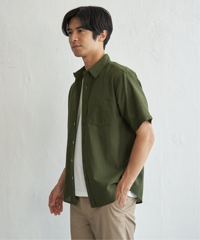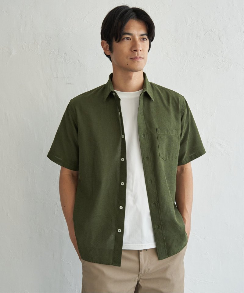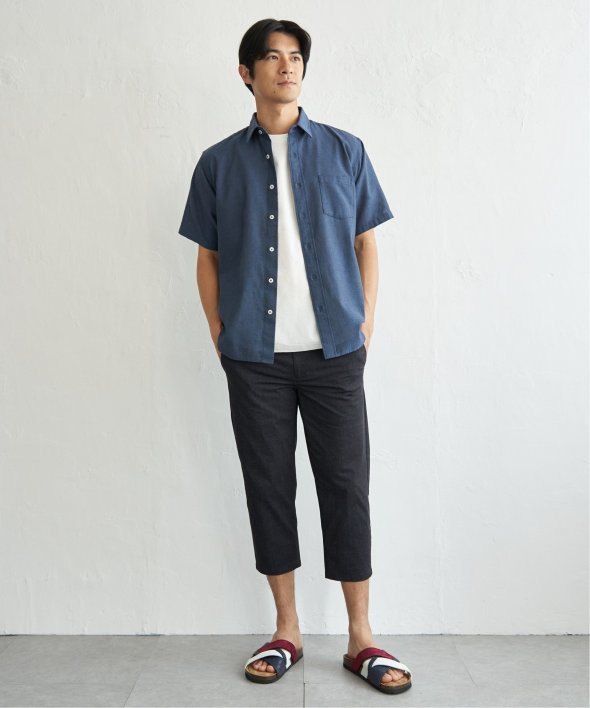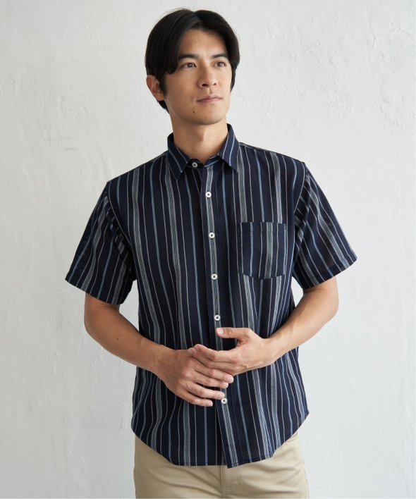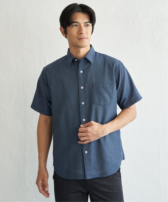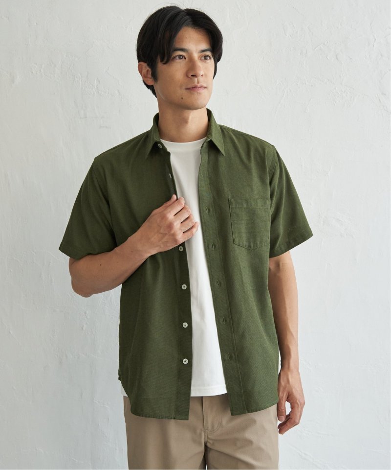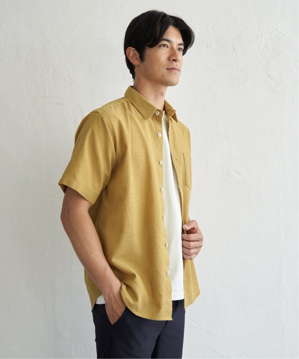 肌触りと通気性に優れたパナマ織りの半袖シャツ。
