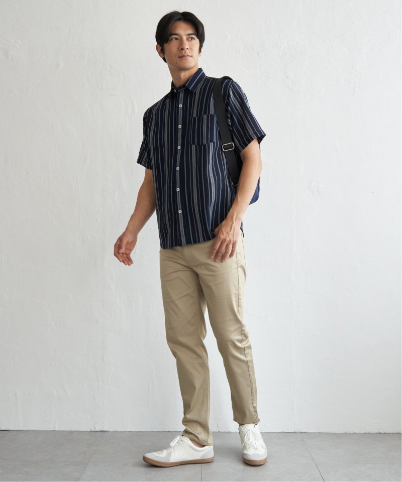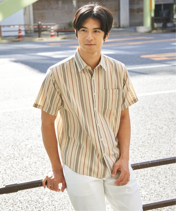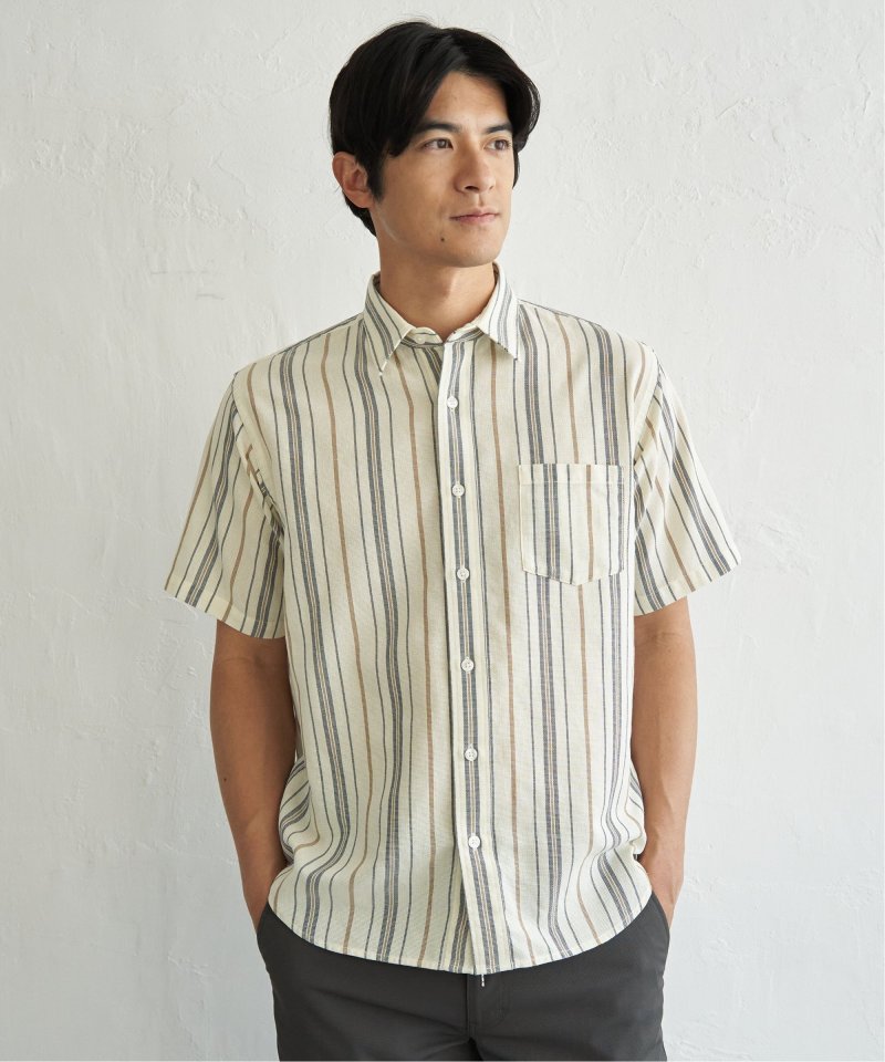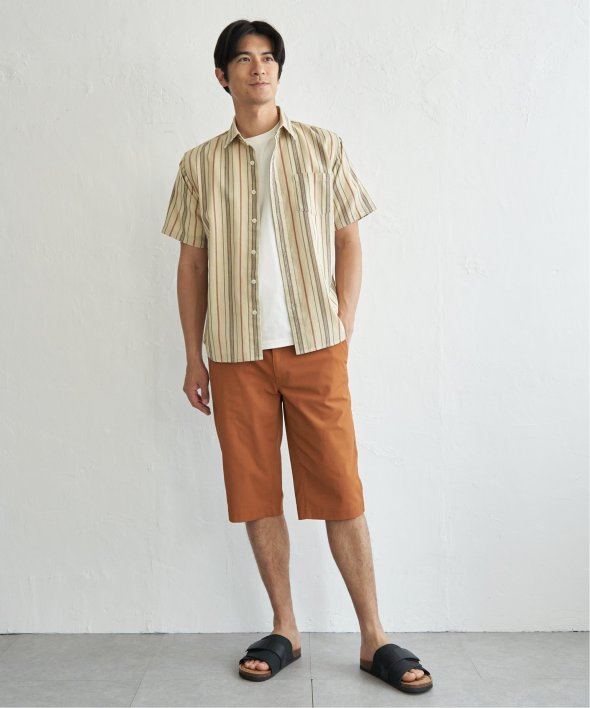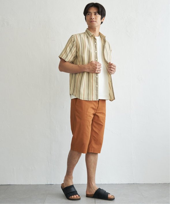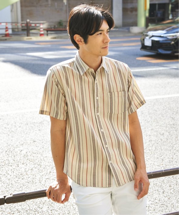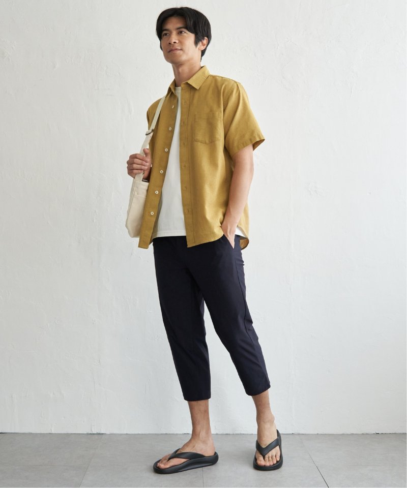肌触りと通気性に優れたパナマ織りの半袖シャツ。