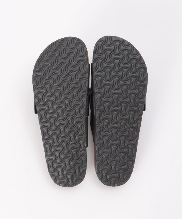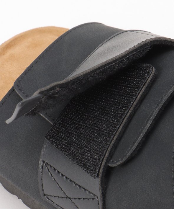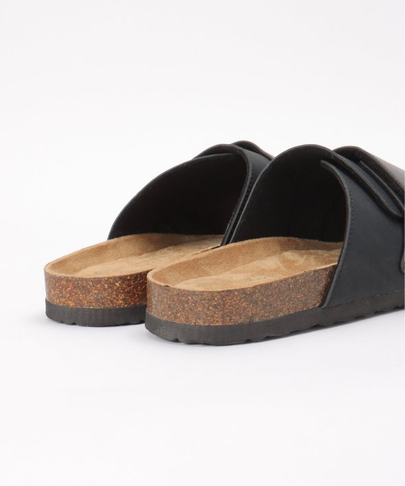 足を大きく包み込むアッパーに、異素材で切り替えたバックルを配したシンプルでクリーンなデザイン。