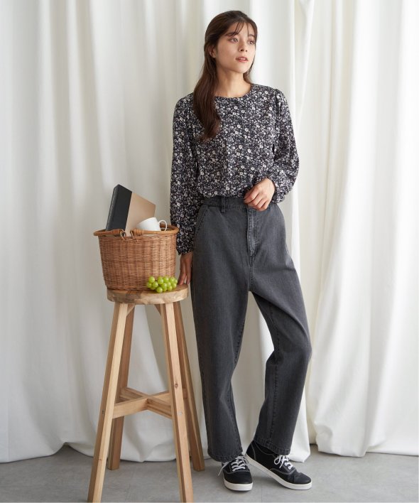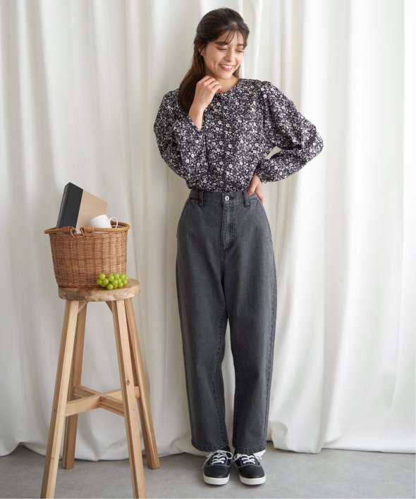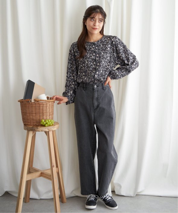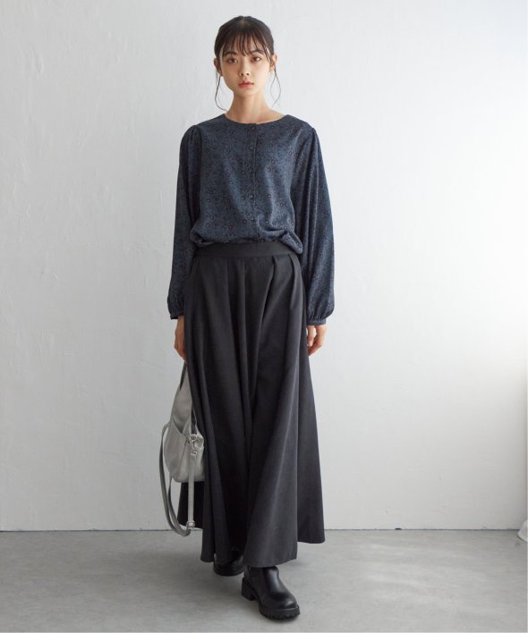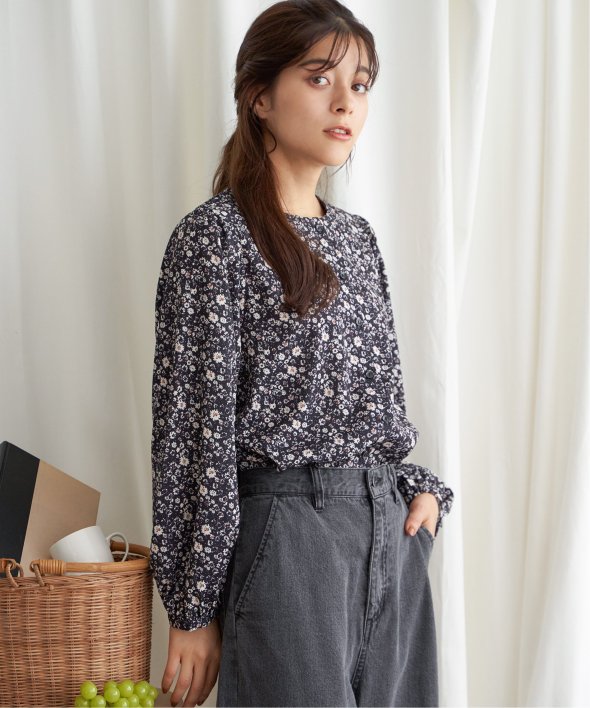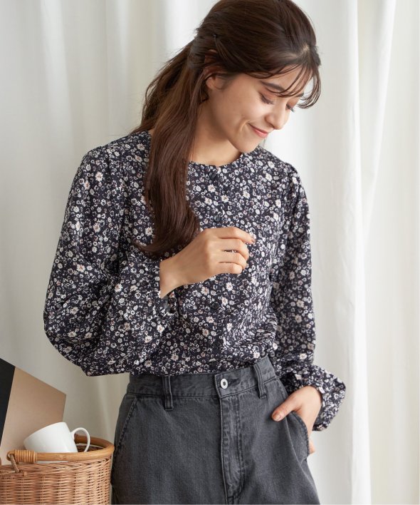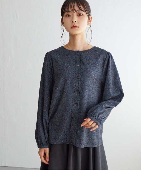 落ち着いた花柄で幅広い年齢層の方に着ていただけるブラウス。