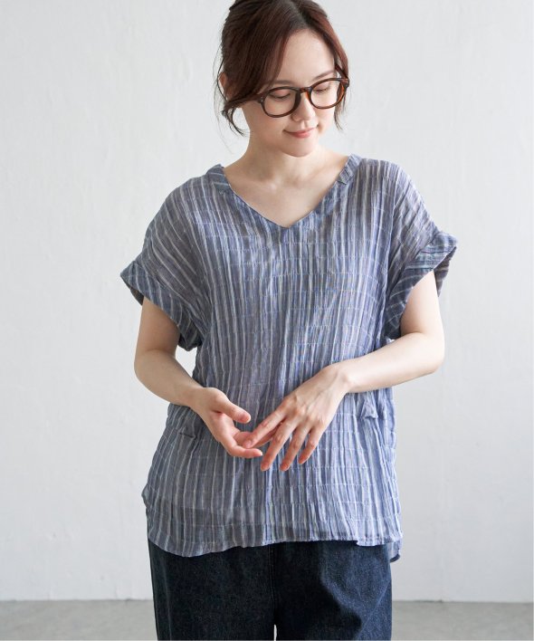 表面感のある生地が魅力のカジュアルに着られるブラウス。