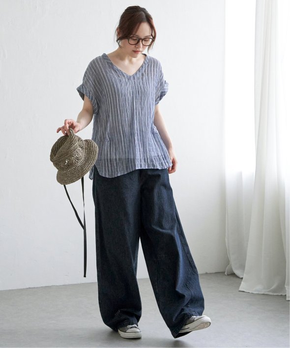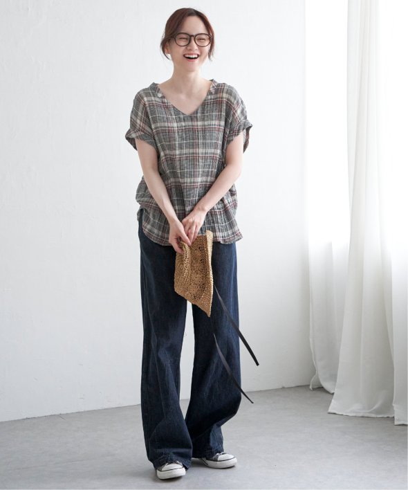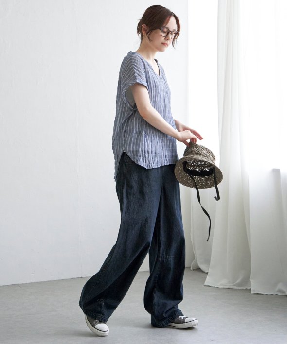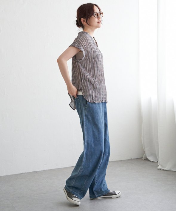 袖のロールアップ、サイドに入ったタックで、ゆったりしつつもメリハリのあるシルエットに仕上がっています。