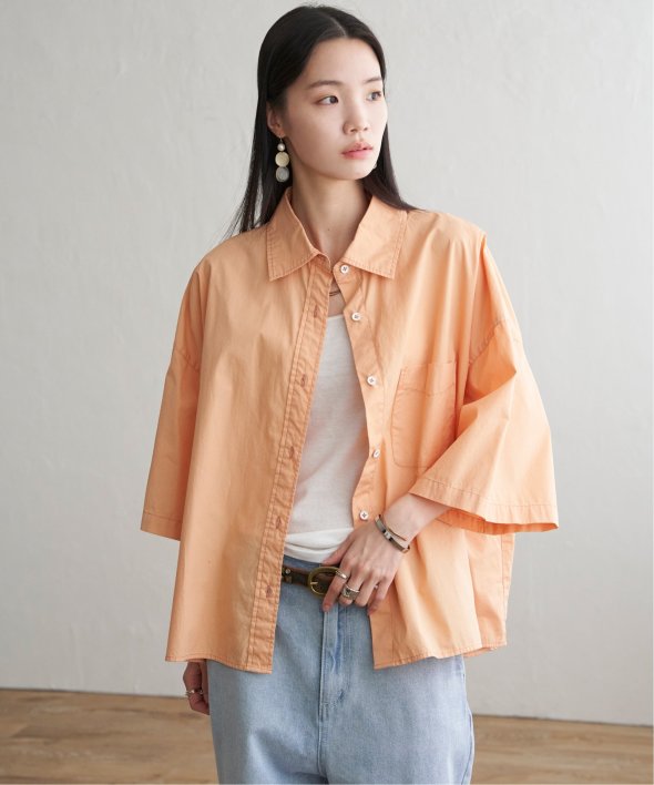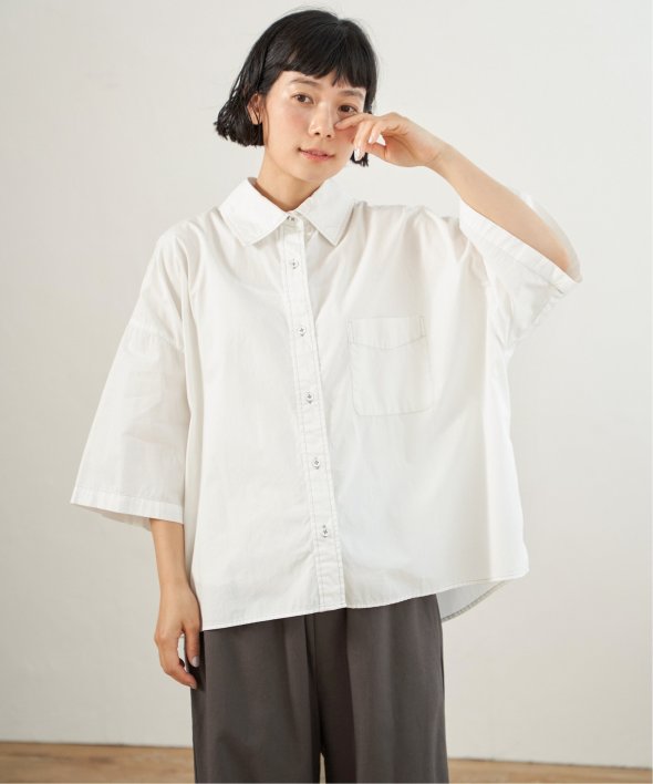 ややハリ感のあるタイプライター生地が特徴的な、オーバーサイズのボックスシャツ。