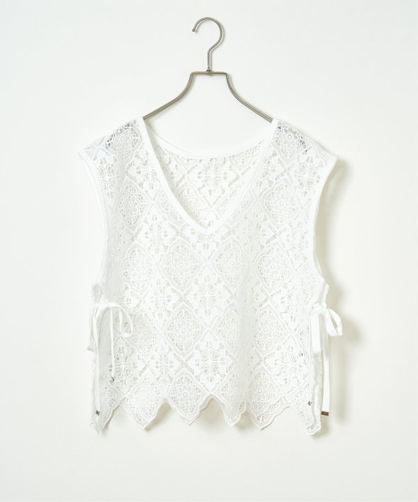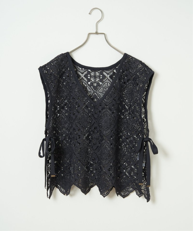 幾何学柄のレースを使用した、表情豊かな2WAYベスト。