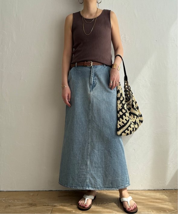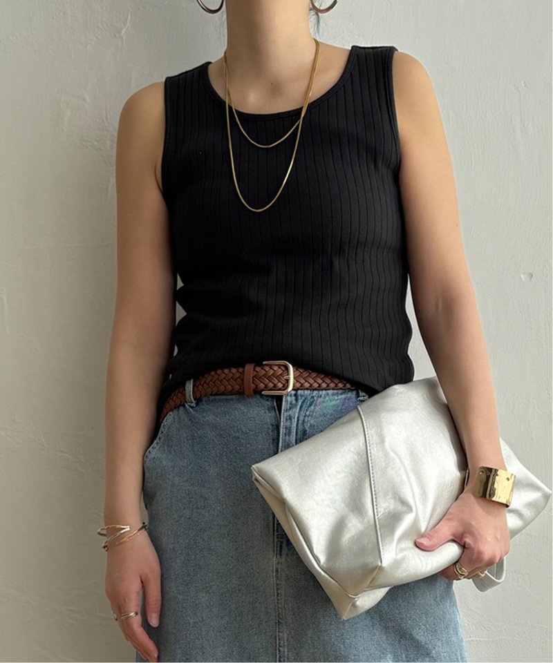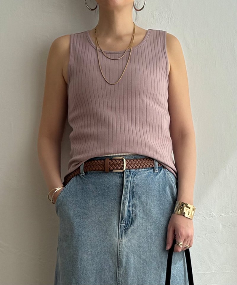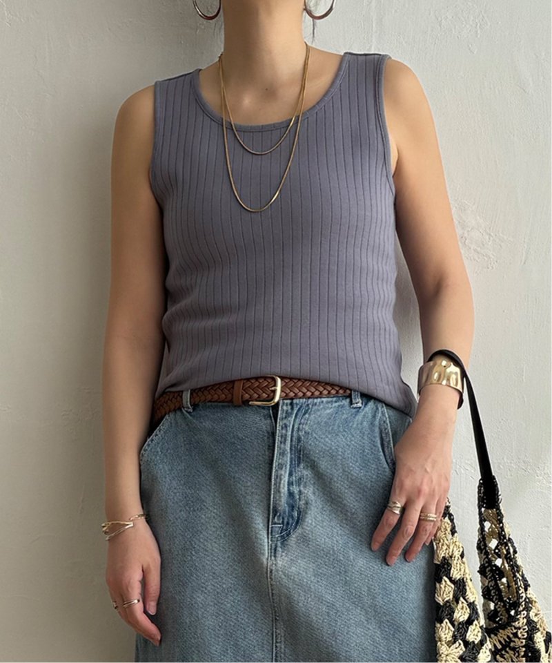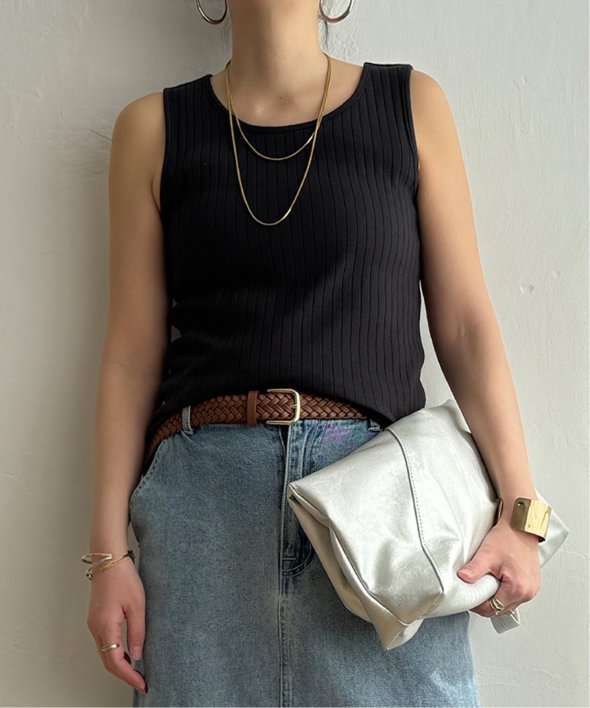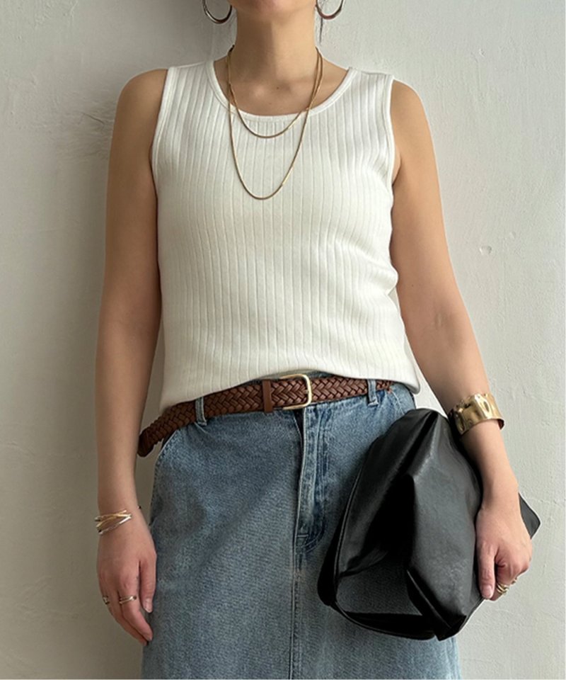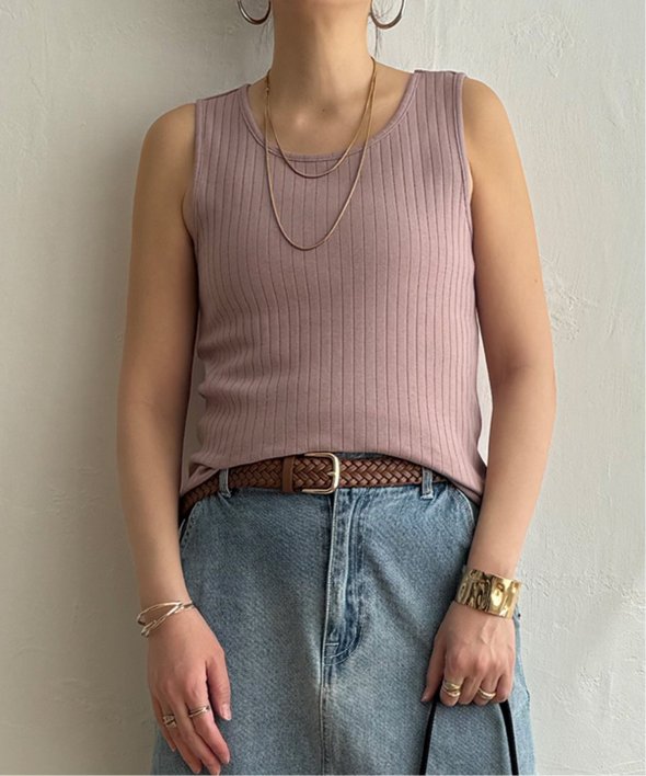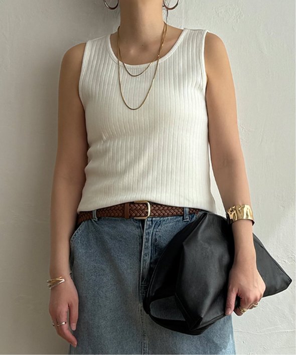 シンプルに着回せる針抜きデザインのタンクトップ
