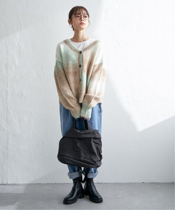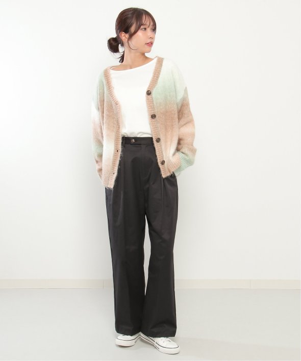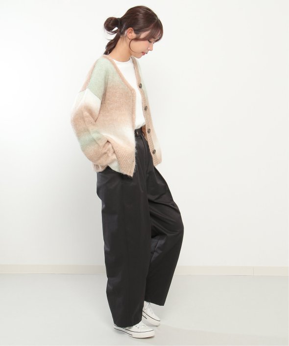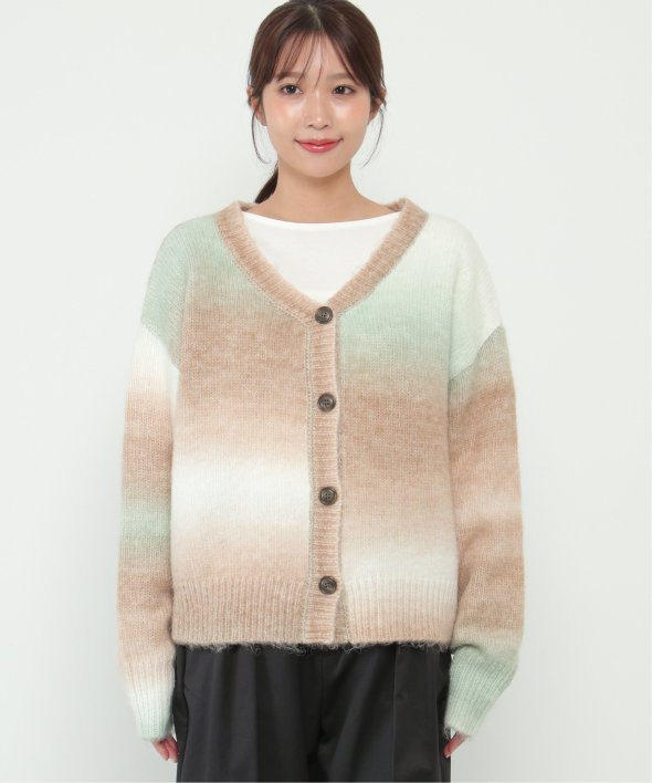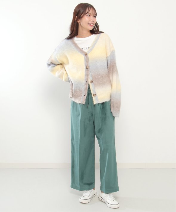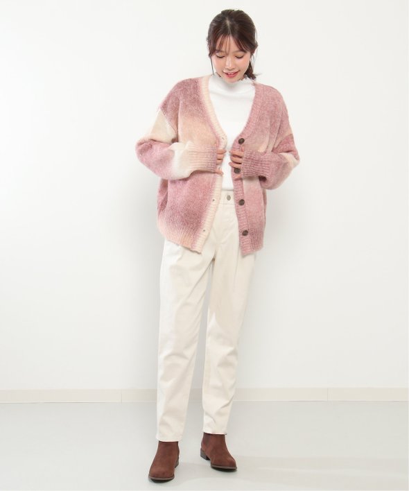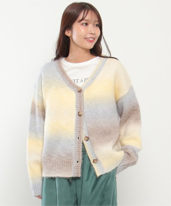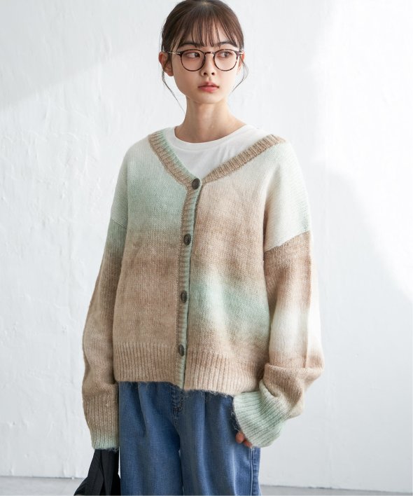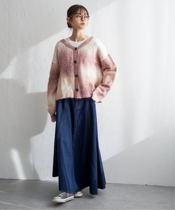 コーデのポイントになるグラデーションカラーのカーディガン。