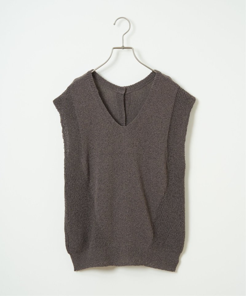 表面感のあるミニブークレー素材を使用した2WAYジレ。ジレとしてもベストとしても着用でき、スタイリングに合わせて印象を変えられます。【素材】ミニブークレー糸。【デザイン】ジレとベストの2WAY仕様。【ポイント】前ボタンのジレベスト。ブークレーのポコポコ感や、MIXカラー展開で表情ある一枚に仕上げました。ベーシックなカラー展開で、より他のアイテムとレイヤードしやすくしました。