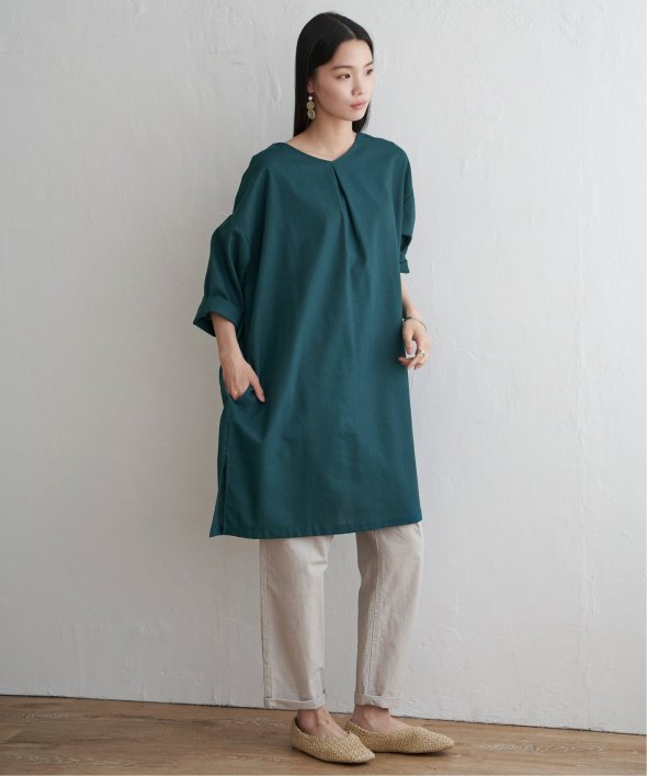 ゆったりサイズで風通しも良く、リネン混のさらりとした肌触りが夏にぴったりのワンピース。