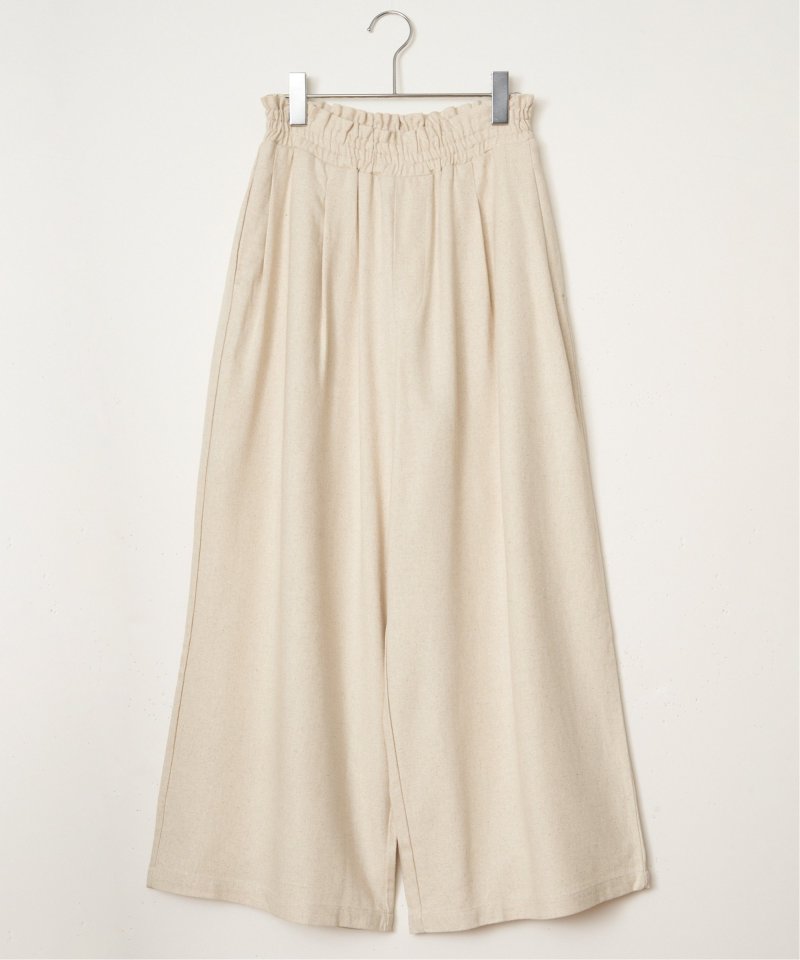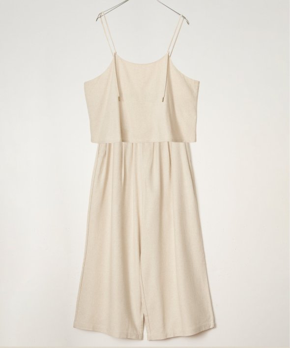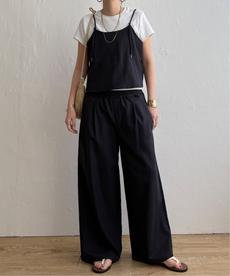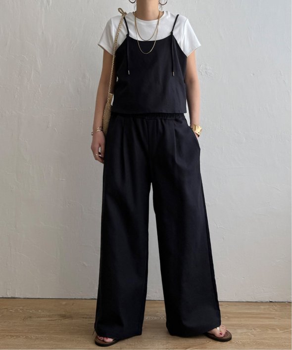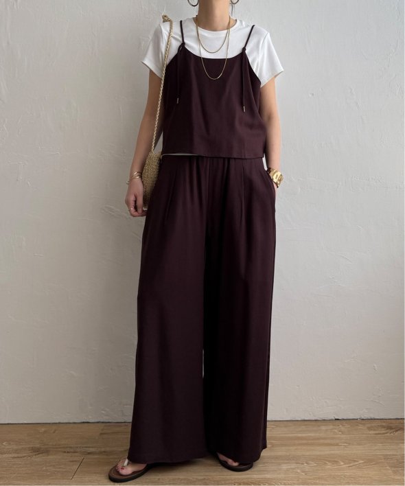 リネン混素材で軽やかに着られるキャミソールとワイドパンツのセットアイテム。