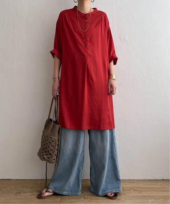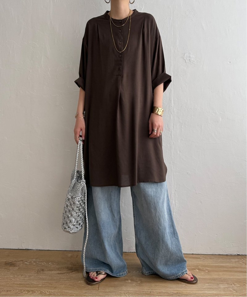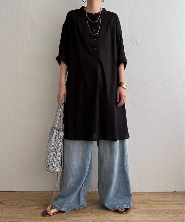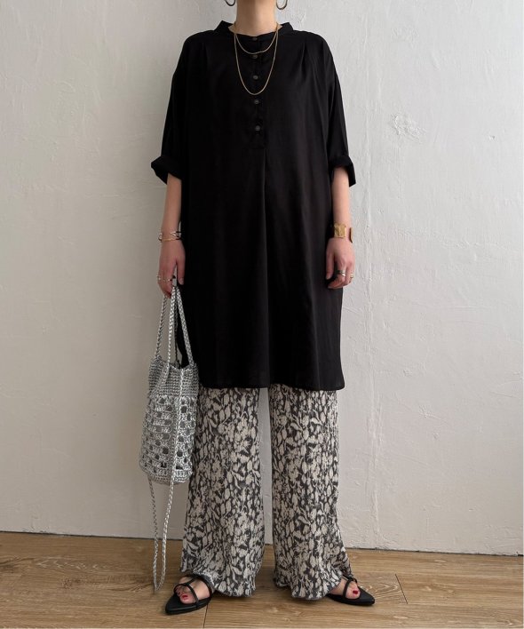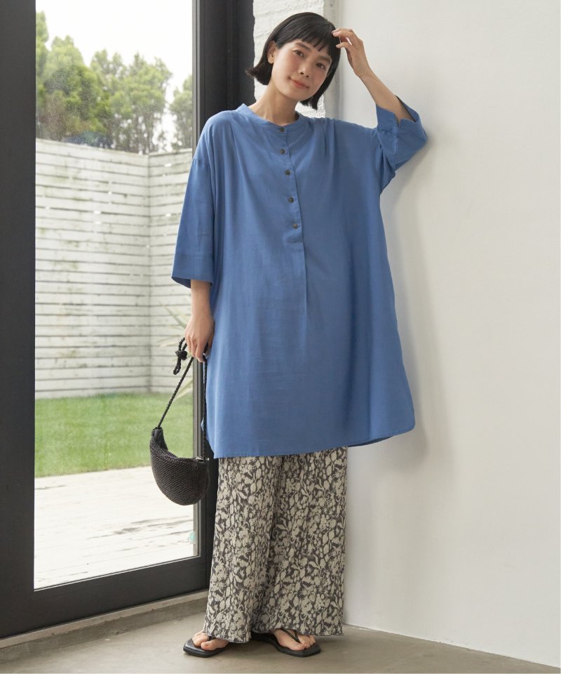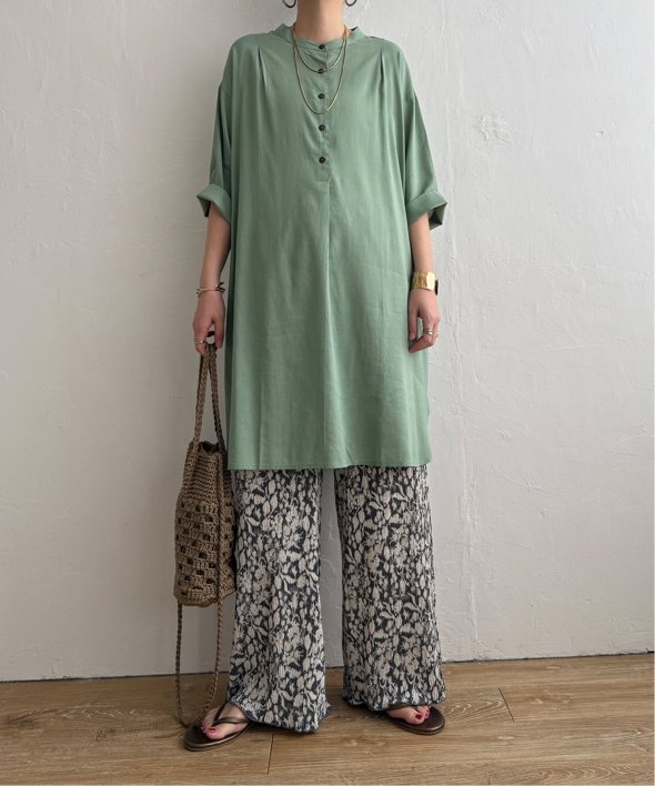 汗ばむ季節にも快適に着られる素材でゆったりとしたシルエットが印象的。