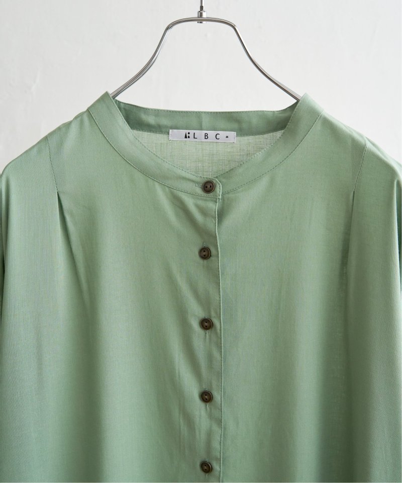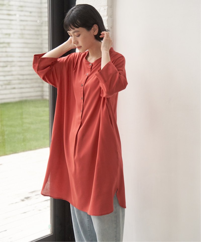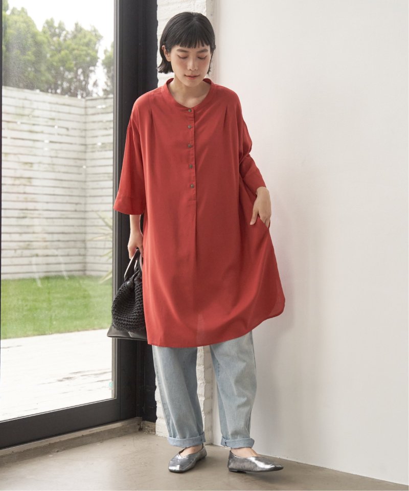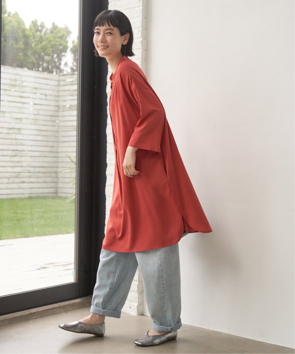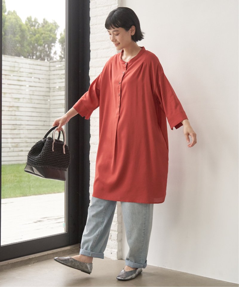 バンドカラーとボタン使いでバランスよく仕上げたアイテムです。