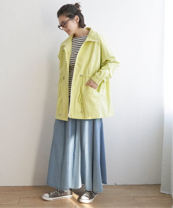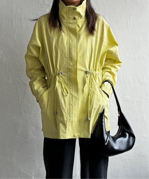 春の定番アウターにトレンド要素のスピンドルや、ハイネックなどのデザインを盛り込んだブルゾン。