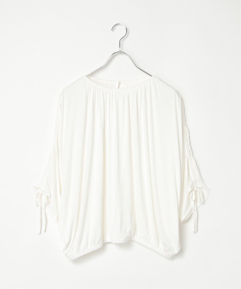 フレンチスリーブから7分袖まで、トレンドのリボンギャザーで調整できる便利なデザインカットソー。
