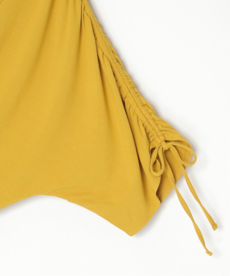 袖リボン&シャーリングのデザイン。