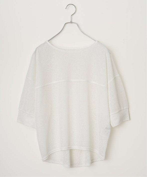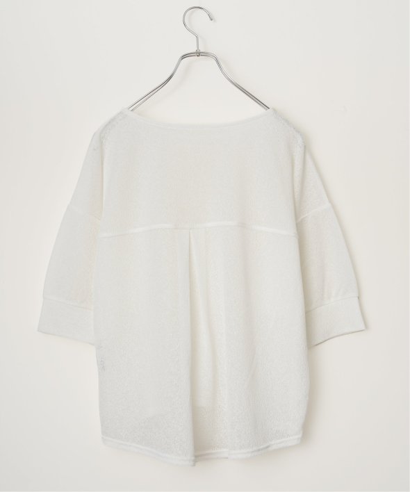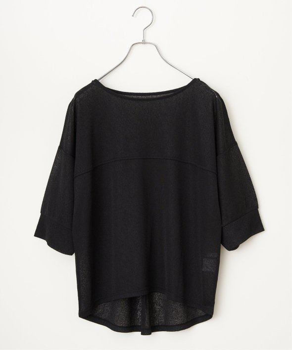 透け感のあるシアーカットソーに、背中のタック切り替えを加えたゆったりシルエット。