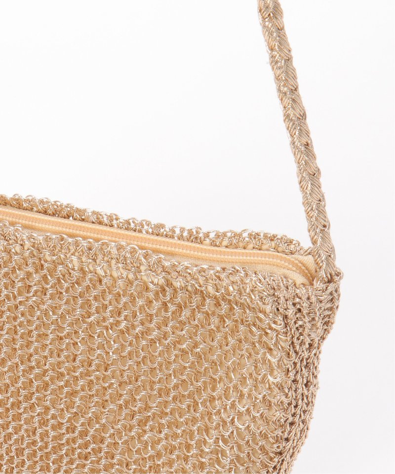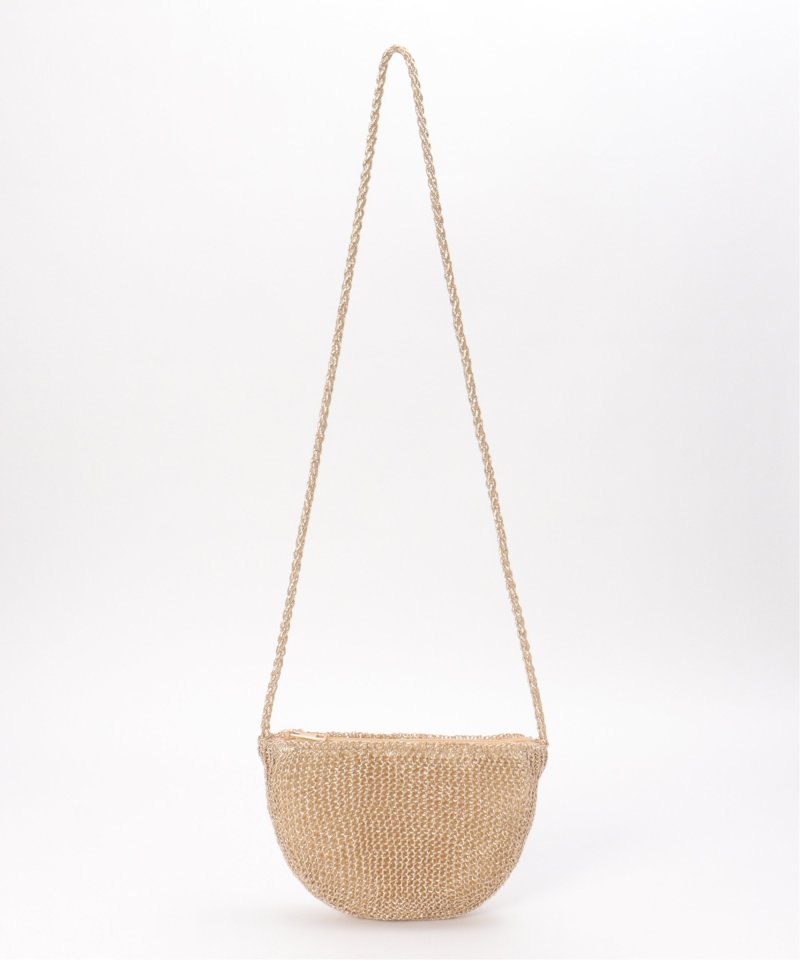 繊細なこま編みとラメ糸の上品な輝きが魅力のミニショルダーバッグ。コンパクトながらもスマホやミニ財布など必要なものがしっかり入るサイズ感で、ちょっとしたお出かけやリゾートシーンにもぴったりです。【素材】光沢感のある糸。【デザイン】ファスナー付きショルダーバッグ。【ポイント】・マチもあるため見た目以上の収納力・ショルダーは結んで長さ調整ができる・ソフトな編地が体に沿いやすく肩にかけやすい