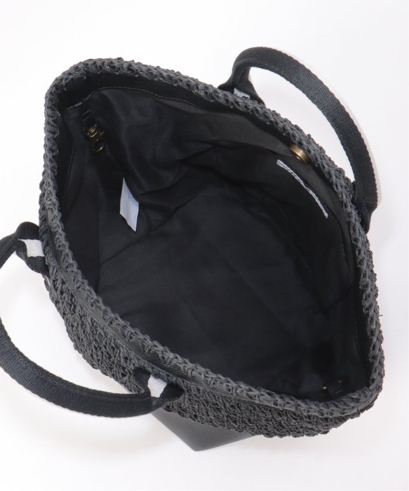 ペーパー素材と合皮を組み合わせた、異素材コンビのバッグ。軽やかさとほどよいきちんと感をあわせ持ち、デイリーに使いやすいアイテムです。【素材】ペーパーと合皮のコンビ。【デザイン】本体が内装ベルトで形の変えられる手持ちバッグ。【ポイント】・内装ベルトで本体の形が変えられる・ハンドルは握りやすいようクッション芯入り
