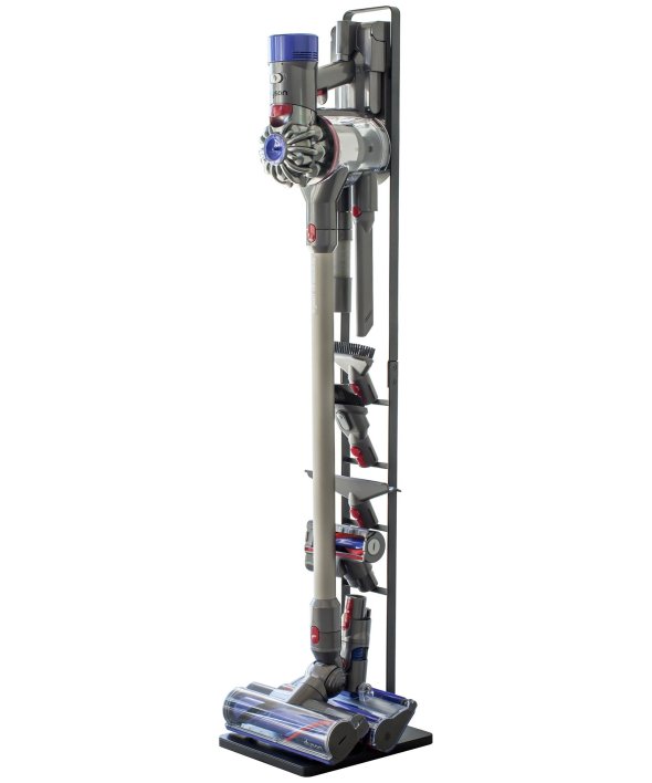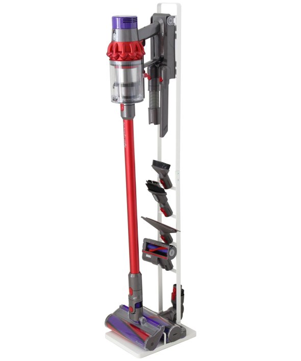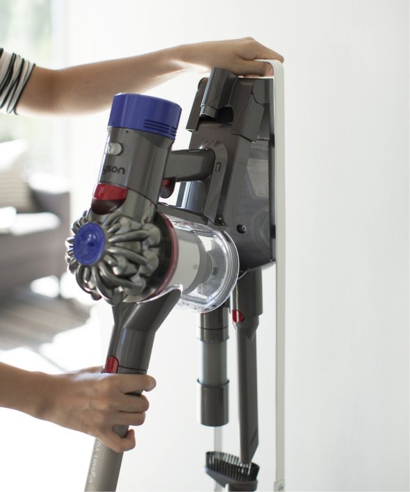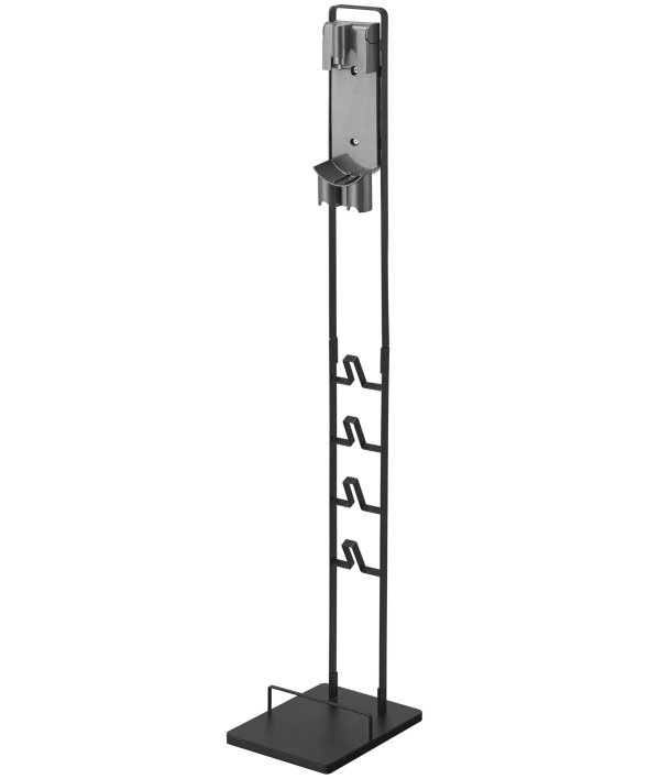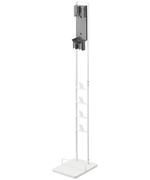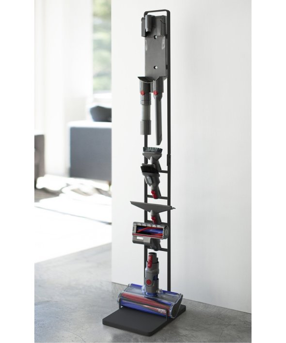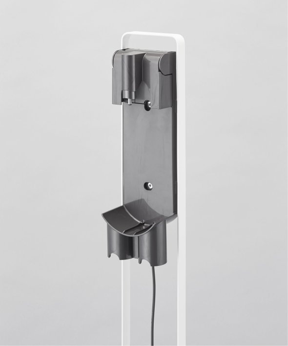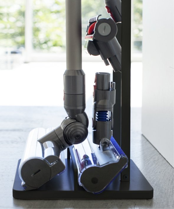 [アイテム説明]ダイソンのコードレスクリーナーをスリムに収納できるスタンド!ダイソンの収納用ブラケットをスタンド本体に取り付け収納できます。スタンドの背面から充電コードを通すことができるので、収納用ブラケットに差し込むだけで収納&充電が同時に可能。毎日使うものだから、気軽に取り出せるのは嬉しいポイント。掃除機アタッチメントは上向きについた4ヶ所のフック部分に差し込むだけで◎スチール部にはエコ素材を使用しています。山崎実業3540 3541