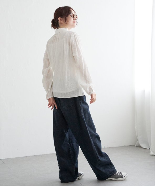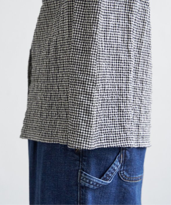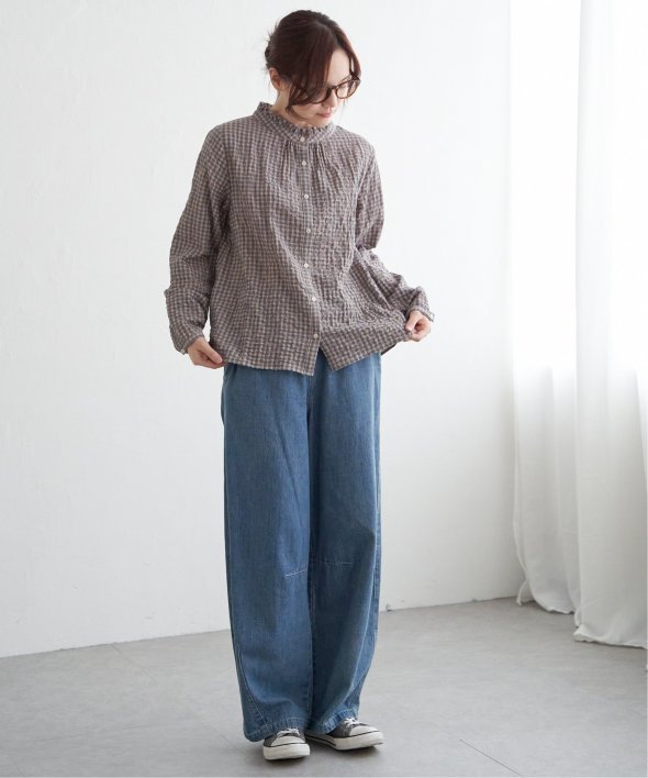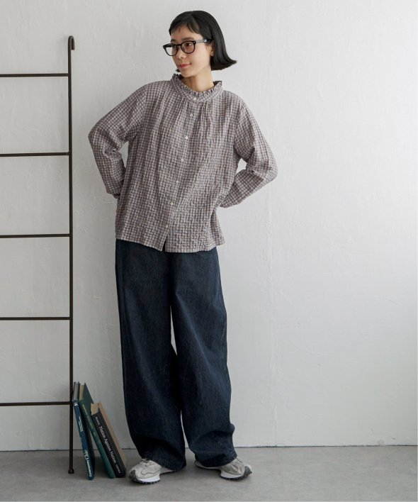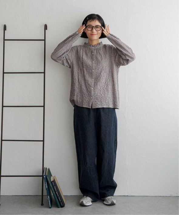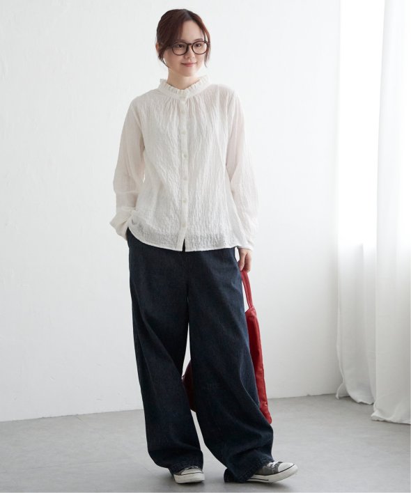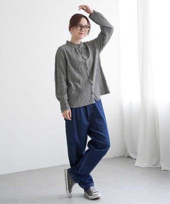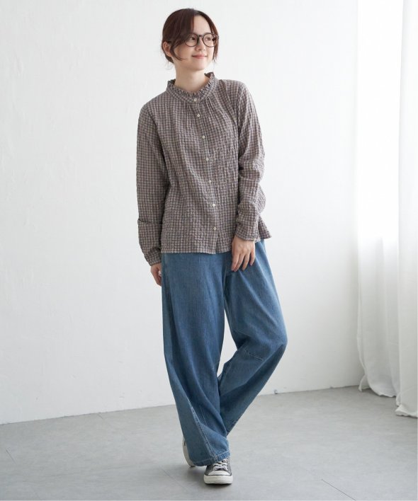 ロングシーズン活躍するコットン生地のブラウス。一枚でも、カーディガンやニットのインナーにも、マルチに活躍してくれます。【素材】オーガニックコットン使用。凹凸感のある生地です。【デザイン】襟フリルで、前開きデザイン。【ポイント】インでも羽織りでも活躍する前開きブラウス。柄ものも無地見えするような細かな柄域にして着やすくしています。秋を感じるようなクラシカルなカラー展開。お手入れもしやすいポコポコ素材です。