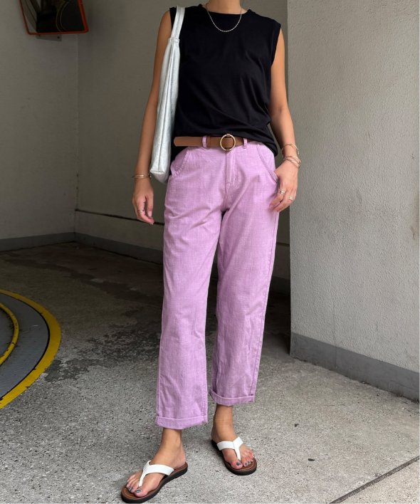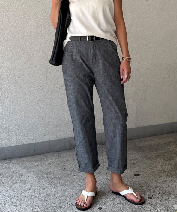 暑い夏も涼しく履けるシャンブレーパンツ。