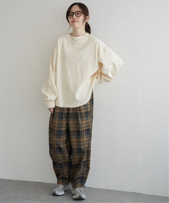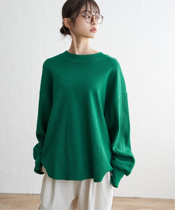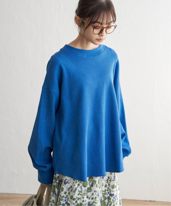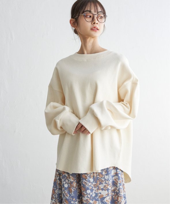 一枚でもしっかり着映えする、ボリューム袖のワッフルプルオーバー。