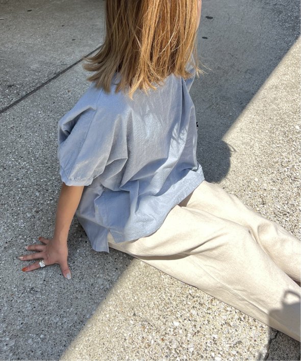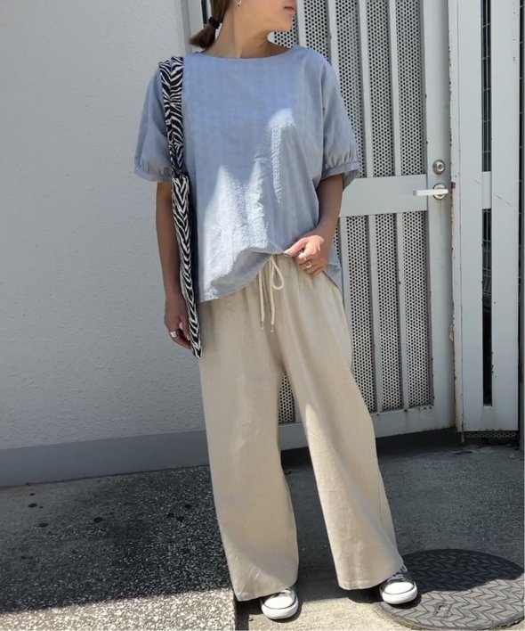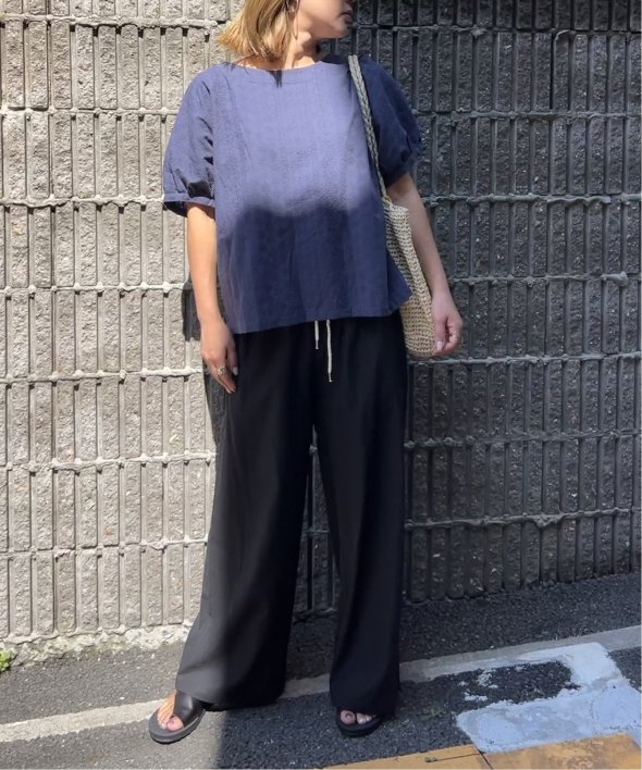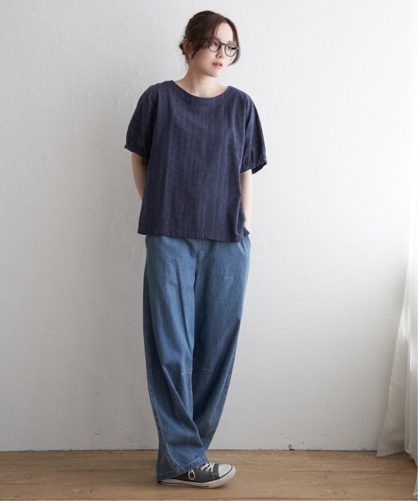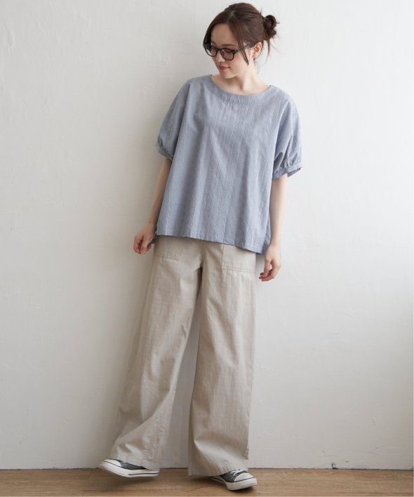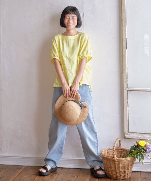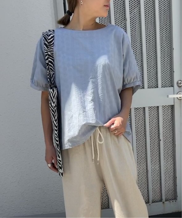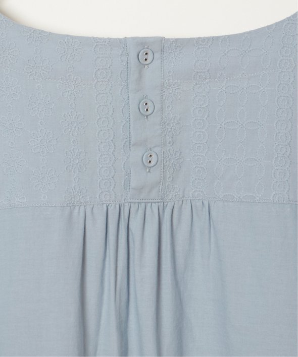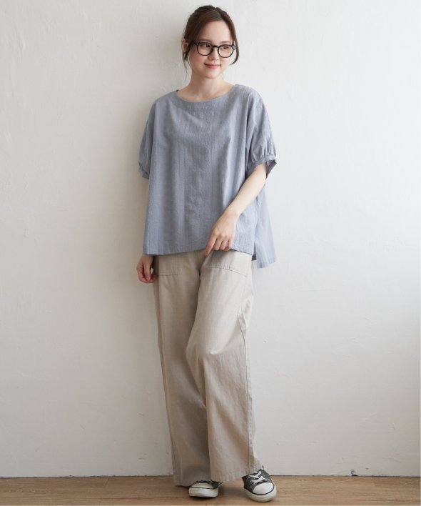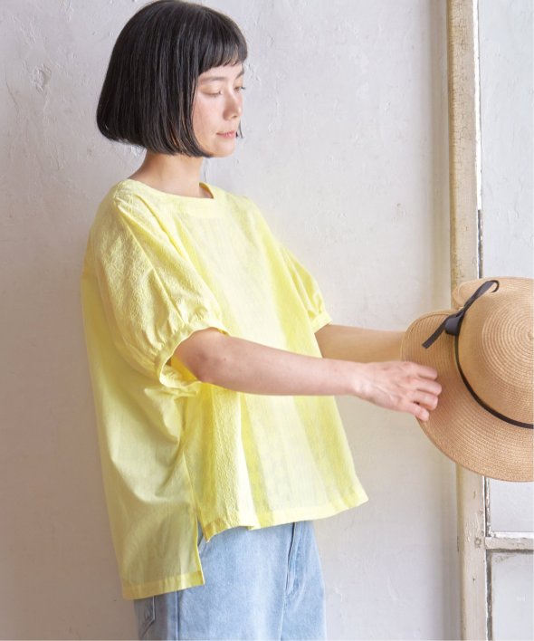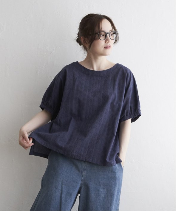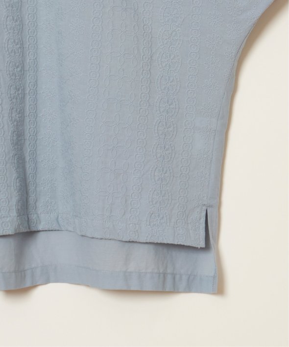 一見無地に見える、同色刺繍のブラウス。さらっとTシャツ感覚で気軽に着ていただけます。【素材】綿100%。【デザイン】ドルマン袖のゆったりブラウス。【ポイント】これまでの半袖からより優しい印象で、ゆったり着られるドルマンスリーブのシルエットにリニューアル。二の腕を優しく隠してくれるギャザー使いの袖です。