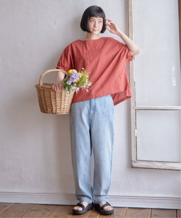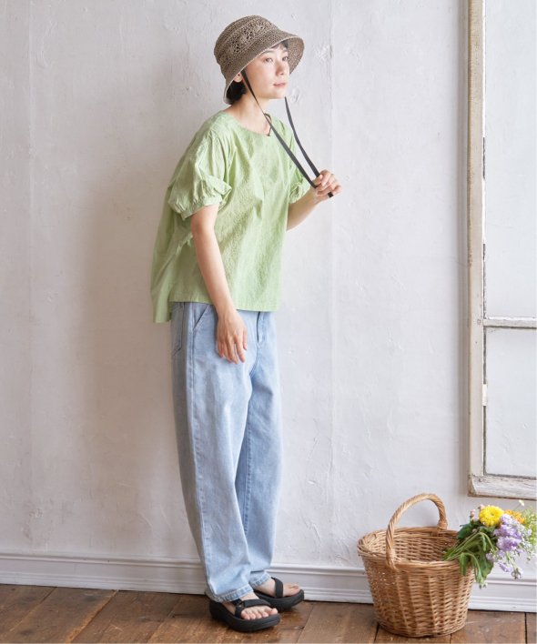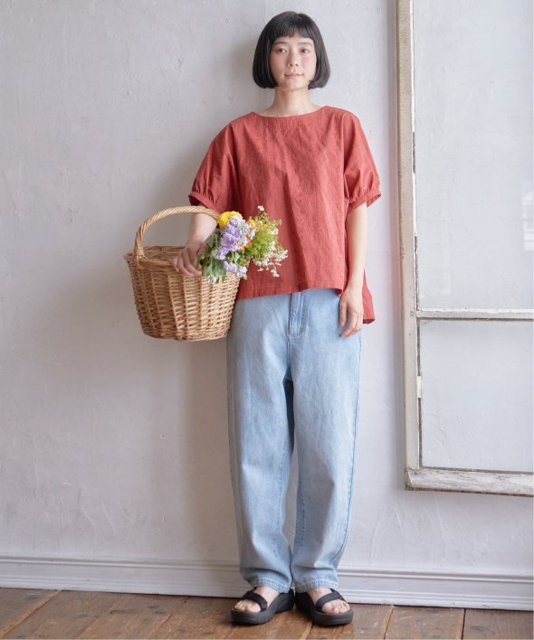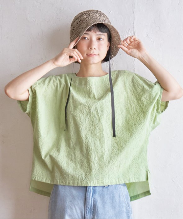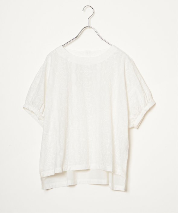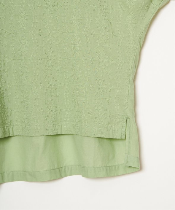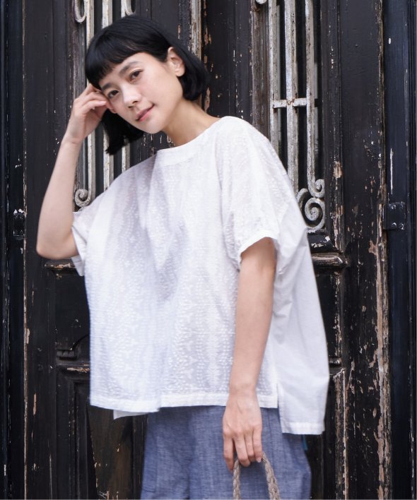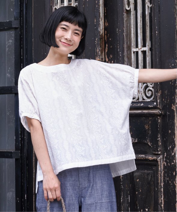 ゆったり着られるボタニカル刺繍のチュニックブラウス。身頃と同色の刺繍にすることで、無地感覚で着やすいさり気ないデザイン性です。【素材】コットン100%素材。【デザイン】ゆったりドルマンスリーブのシルエット。【ポイント】繊細なボタニカル柄の刺繍が全面に入ったブラウス。さらっとした綿素材なので、重ね着したくない夏に一枚でサマになる便利アイテムです。【おすすめコーディネート】リネンパンツ+ペーパーハットを合わせればナチュラルなサマーコーデが完成。