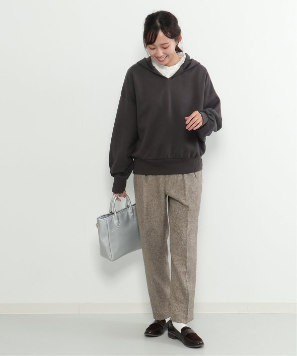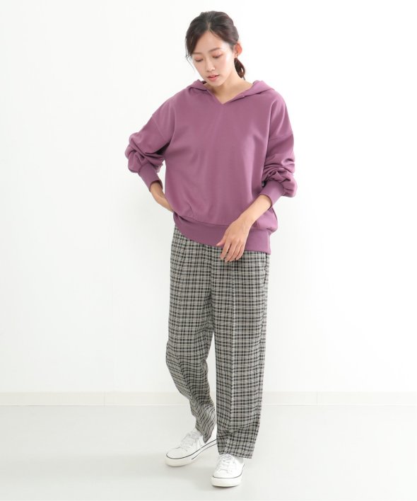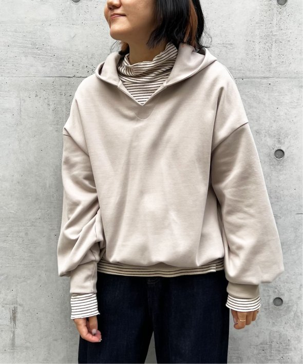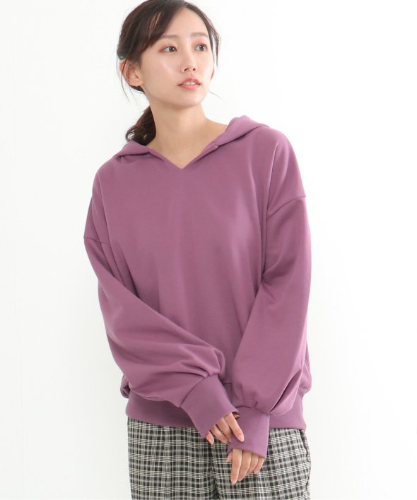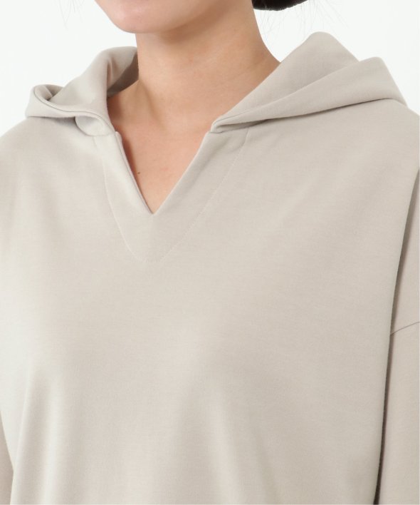 首元がVネックになった、ほどよくヌケ感のあるパーカープルオーバー。