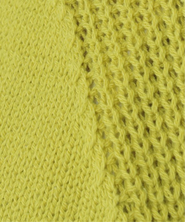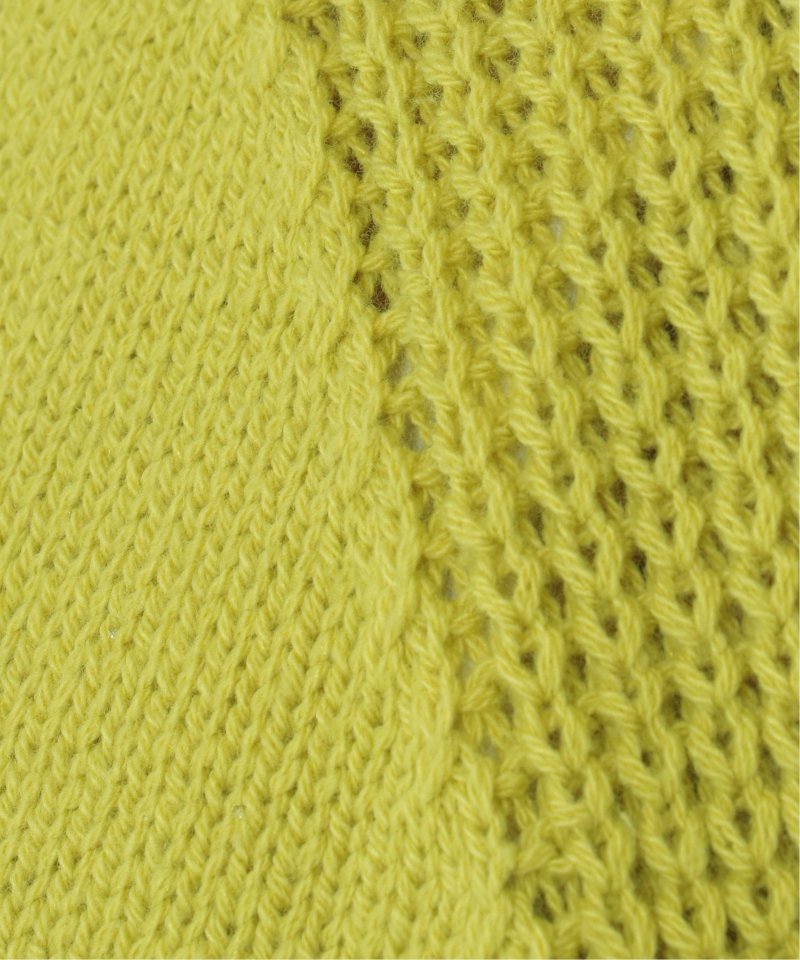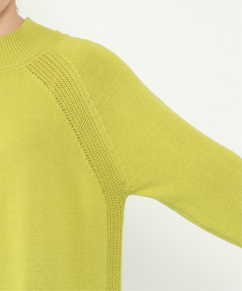 肩からサイドにかけて編地を切り替えた、裾ラウンドのニットプルオーバー。