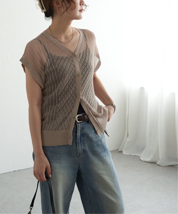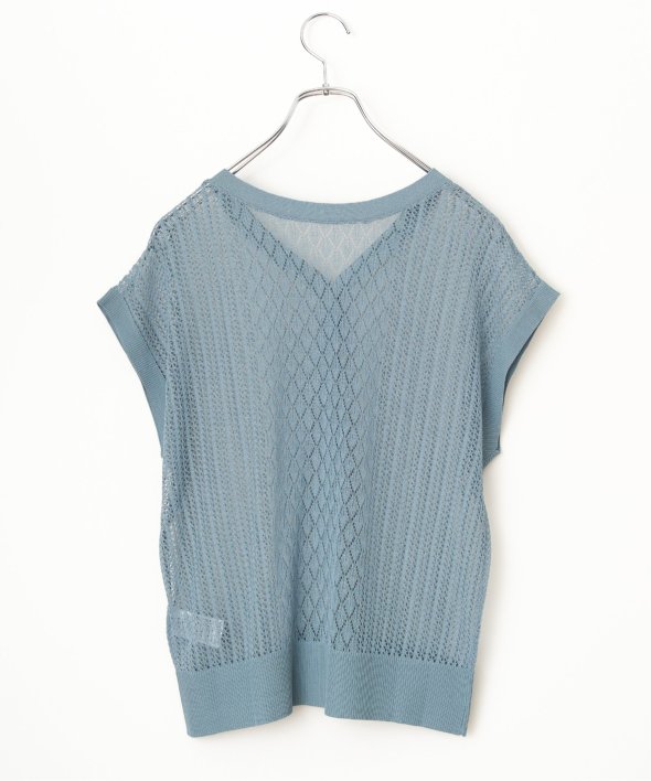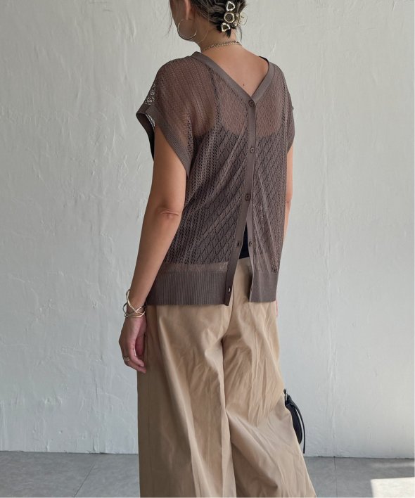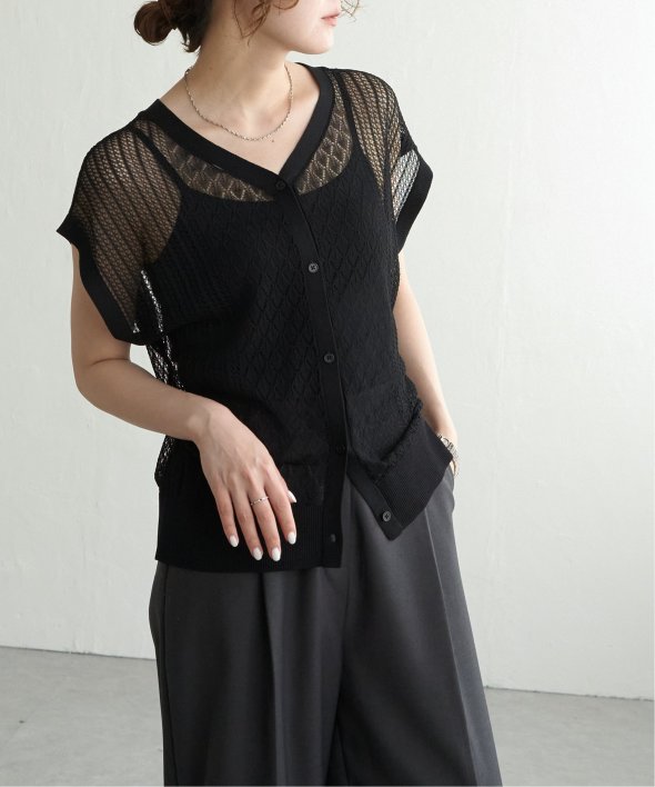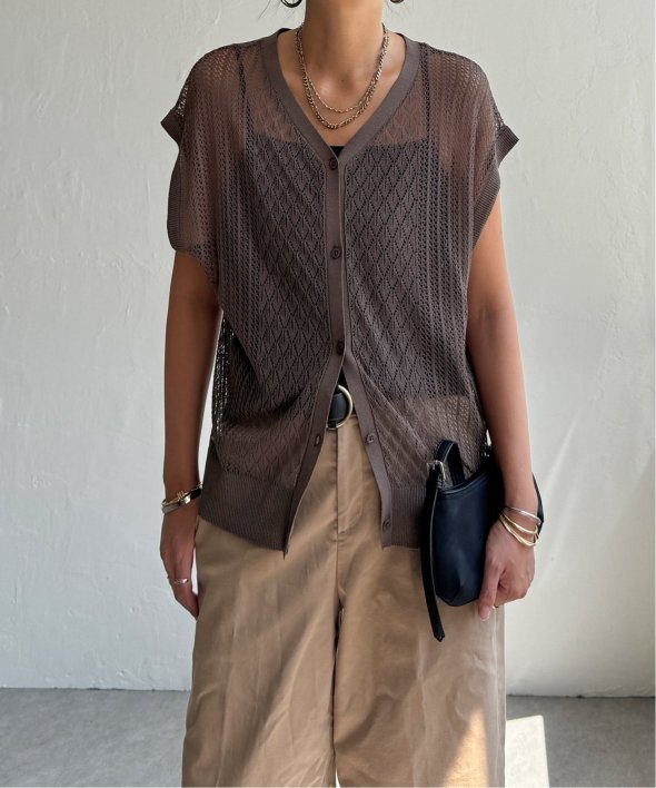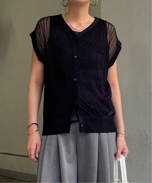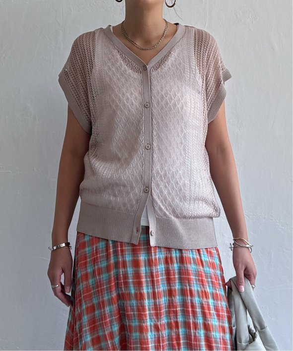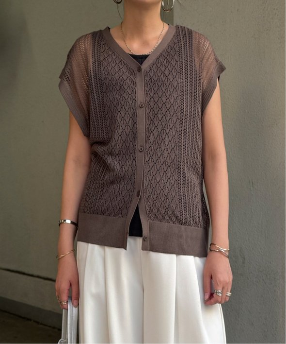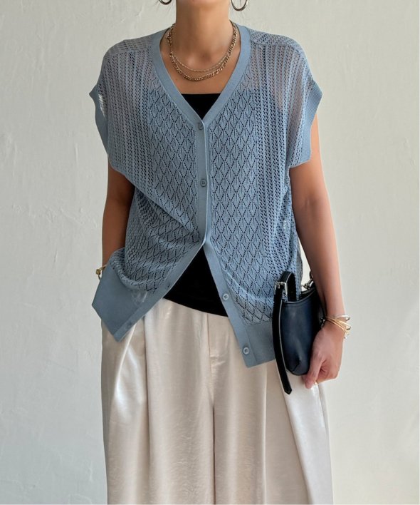 シャリ感のある透かし編みが涼しげな印象を与える2WAYベスト。
