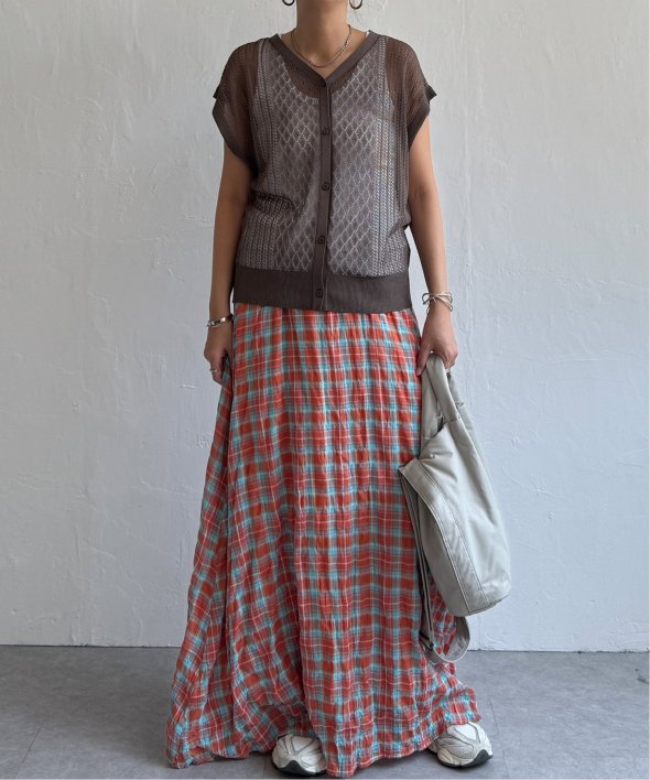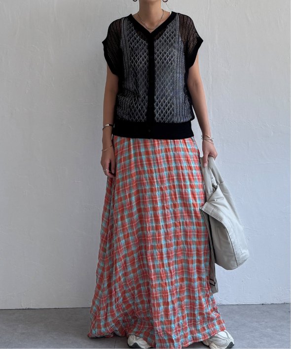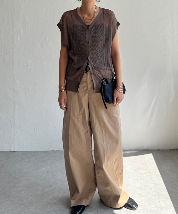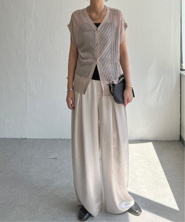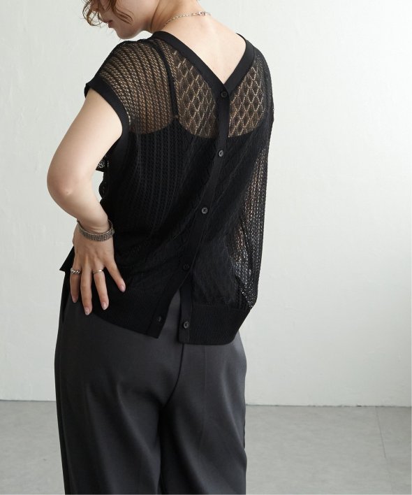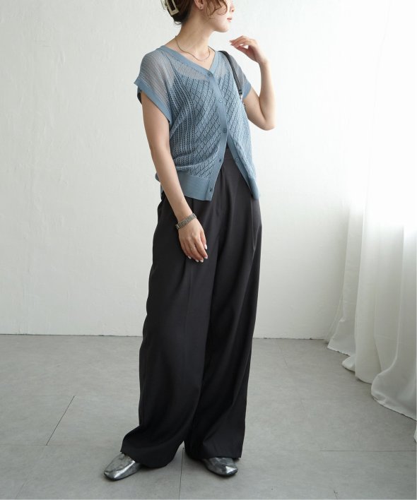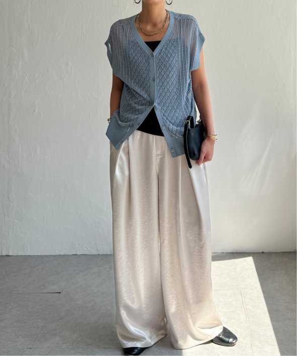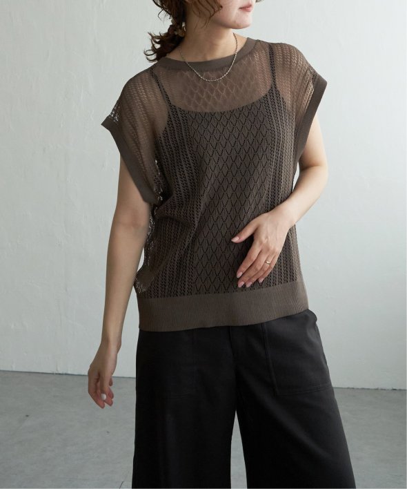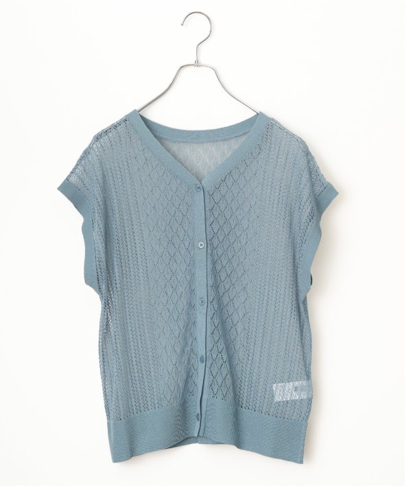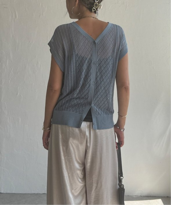 シャリ感のある透かし編みが涼しげな印象を与える2WAYベスト。
