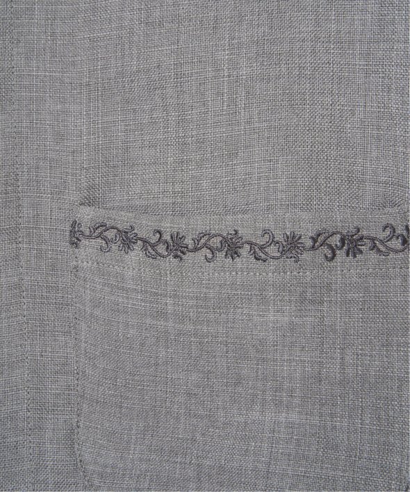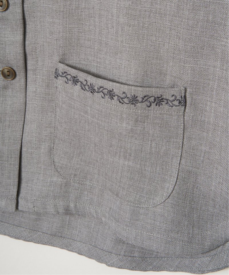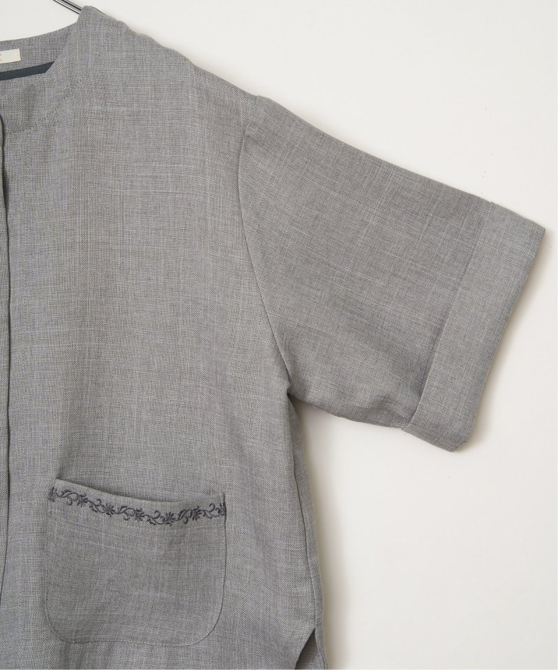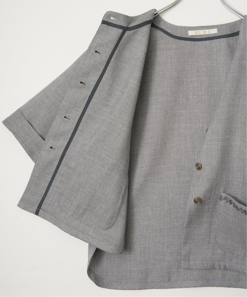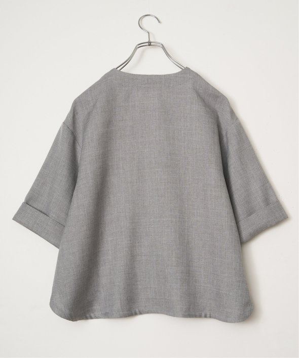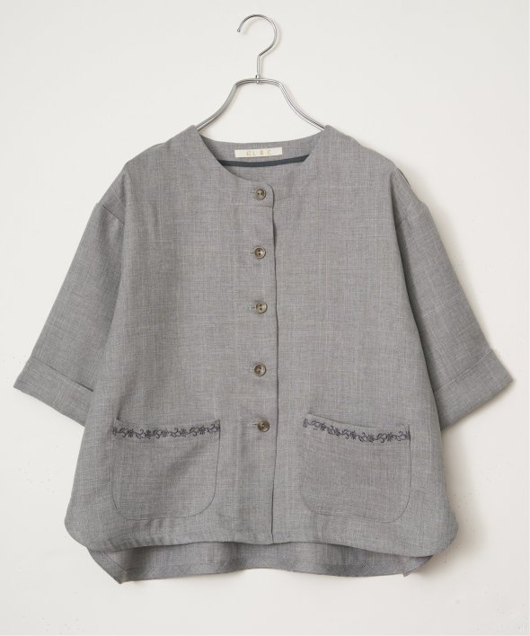 杢見えの表情が魅力の、ドライタッチ素材を使用したハーフスリーブジャケット。さっと羽織るだけでコーディネートがまとまる、軽やかな一着です。【素材】杢見えドライタッチ。【デザイン】ひじ隠れ丈、ノーカラージャケットです。【ポイント】ポケット上部の刺繍がきいた春ジャケット。杢見えの素材を使用して、エクリュらしいやわらかな印象に仕上げています。