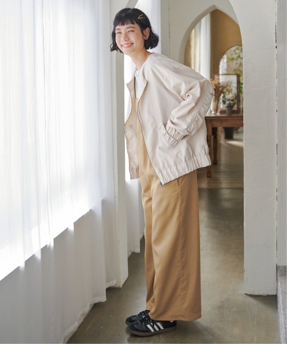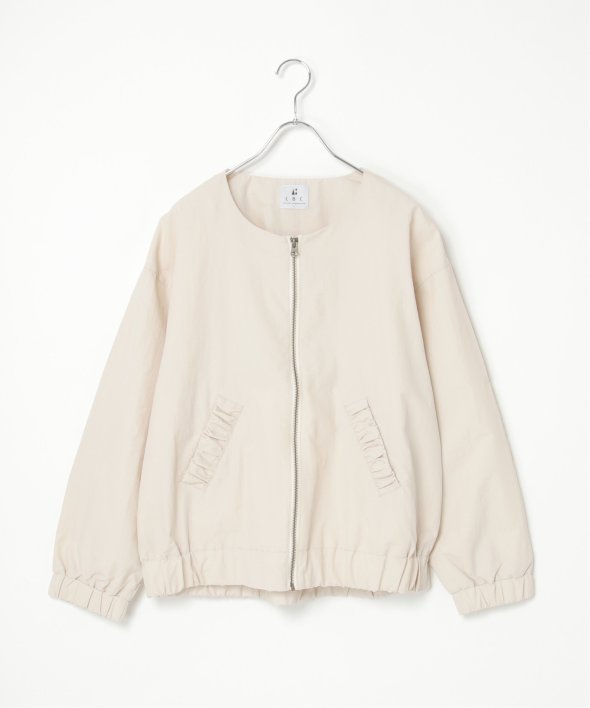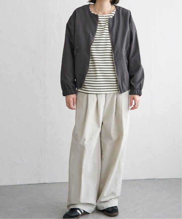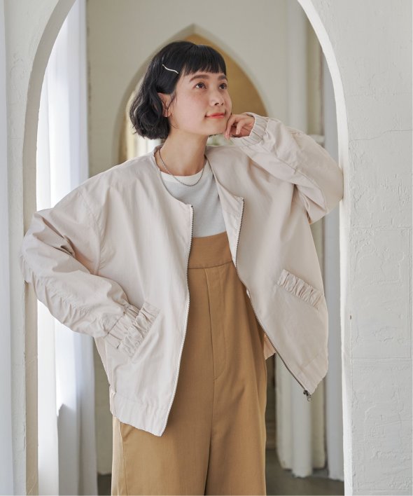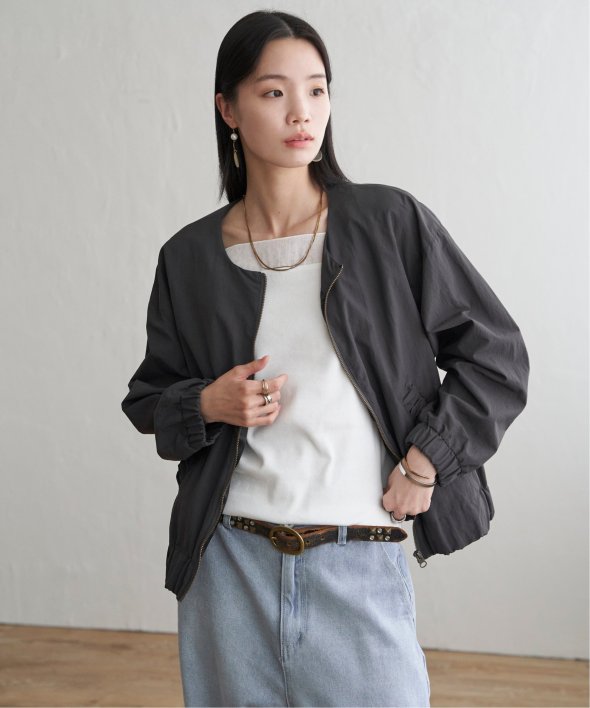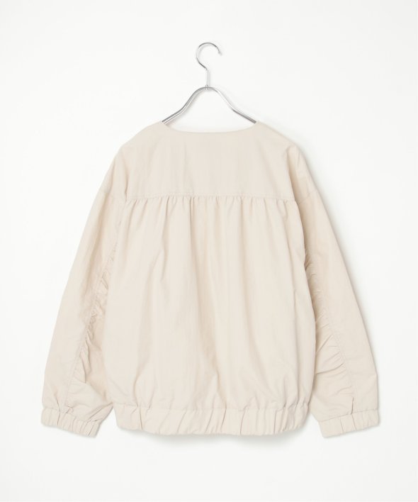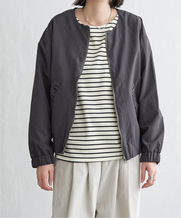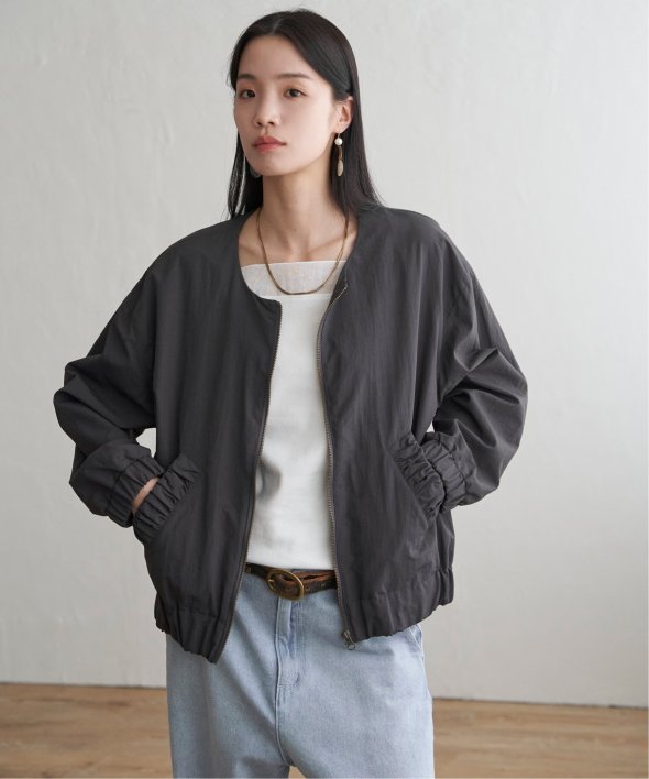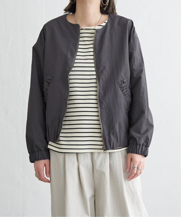 シンプルなノーカラーデザインに、トレンド感たっぷりのバックシャーリングを効かせたナイロンブルゾン。ほんのりスポーティなエッセンスを含みながらも、計算されたシルエットがこなれた印象を演出します。【素材】ナイロン素材。ややマットでファッショナブルな印象です。【デザイン】袖下からバックスタイルにかけてシャーリングデザイン。ノーカラー&ファスナー使い。【ポイント】トレンドのバックシャーリングをきかせた、端境期に便利なブルゾン。ポケット口にもゆるシャーリングを入れてアクセントにしています。ゆったりシルエットで、幅広いコーディネートに羽織ることができます。当サイトの秋冬物商品の期間限定割引価格につきまして、秋冬物は基本的に4月10日以降は一定期間正価での販売価格に戻させて頂きます。あらかじめご了承くださいませ。